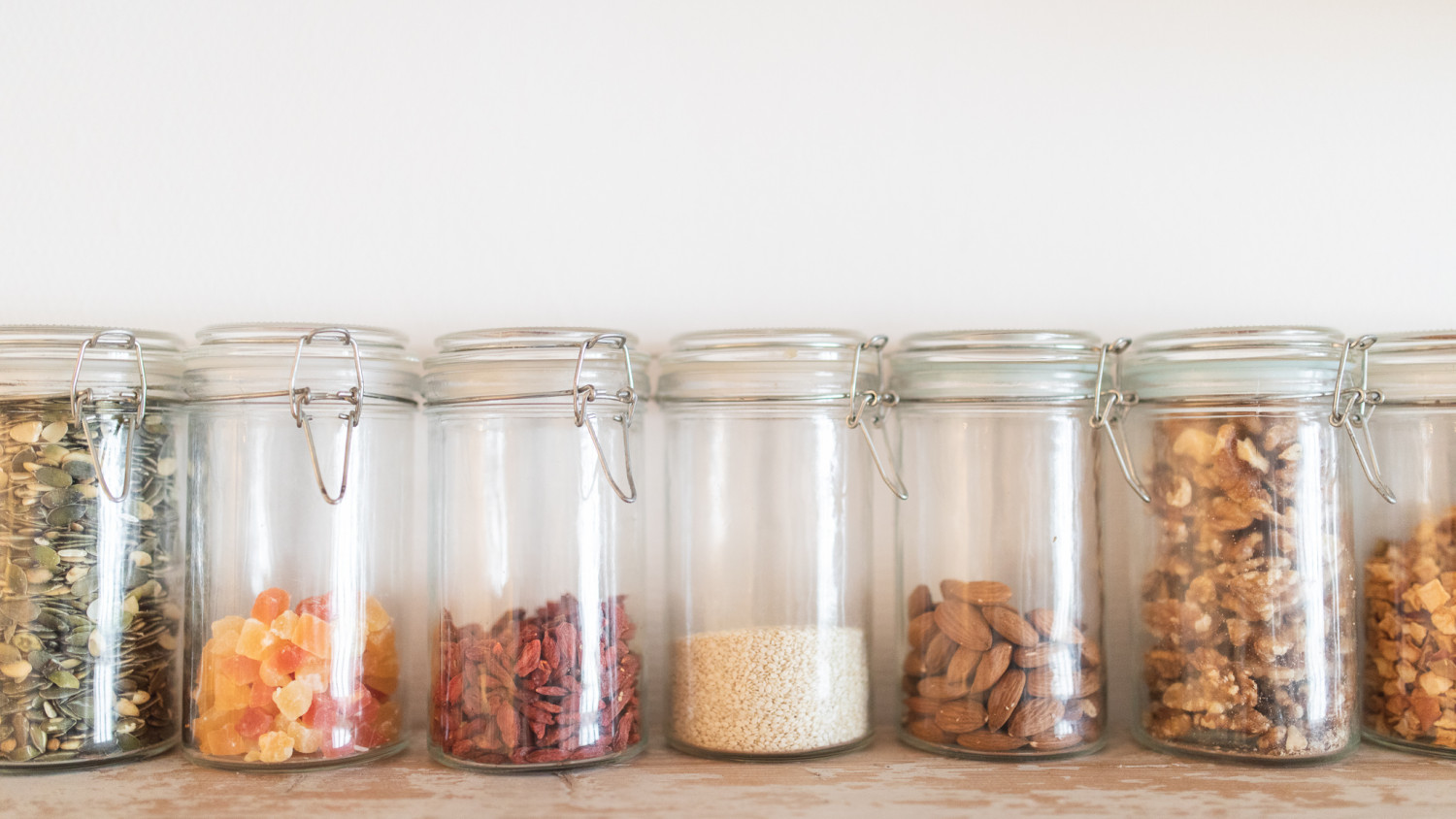 Hos mig står massevis af nødder, kerner og tørrede frugter fremme. På den måde får jeg dem brugt. Der kommer lidt chiafrø og valnødder ovenpå yoghurt, rugkerner i mine salater og gojibær og tørrede æblestykker ovenpå havregrød – for blot at nævne nogle eksempler.