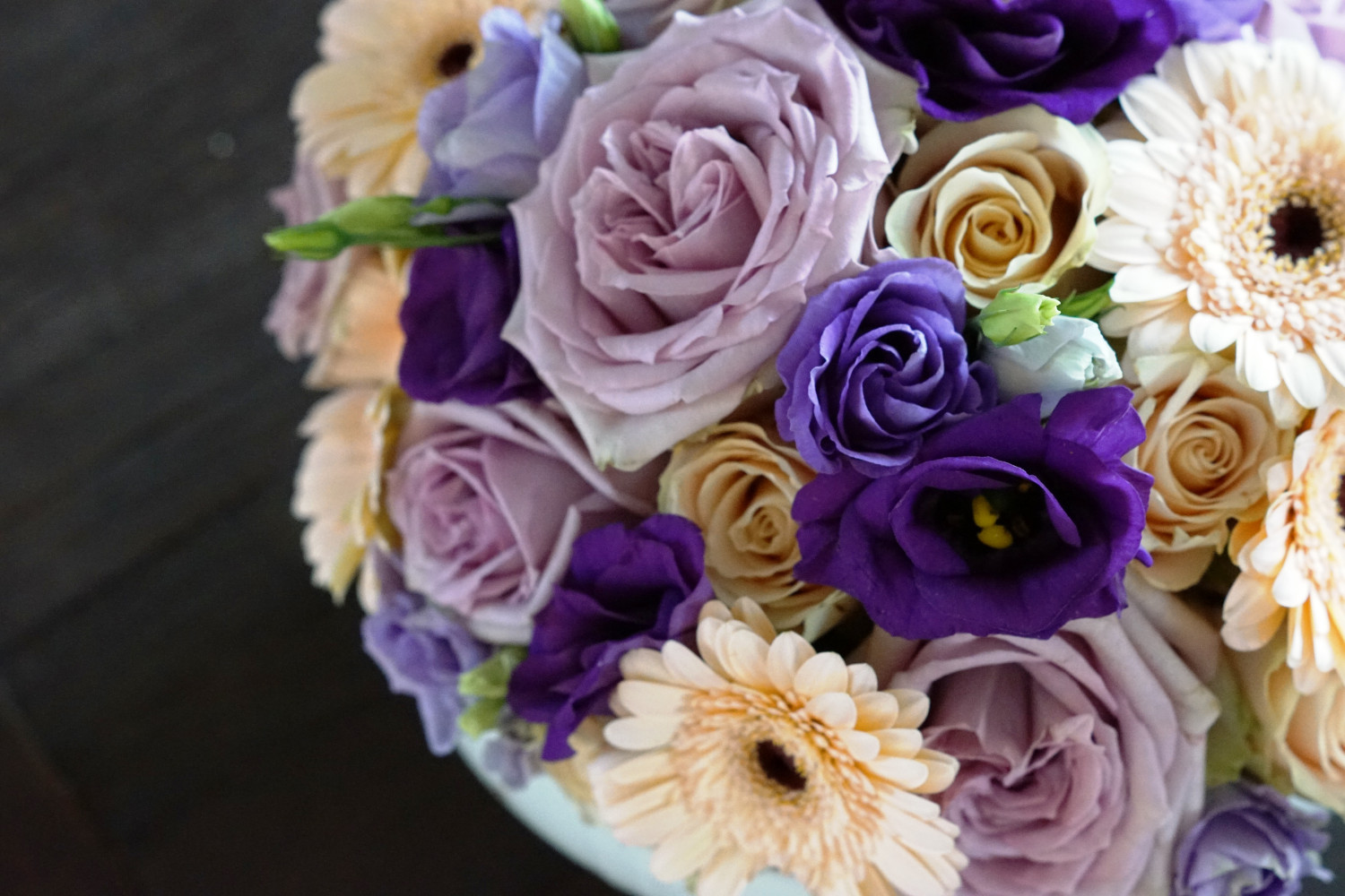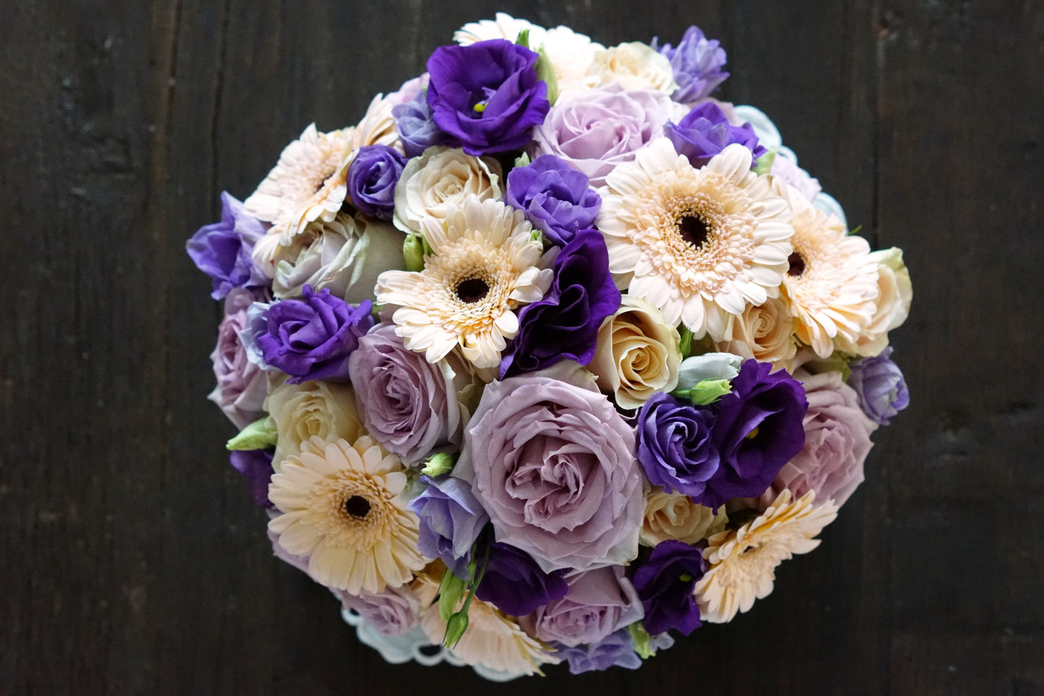 Fyldblomsterne kan være hvad som helst, men deres blomst må gerne have en god størrelse. Du kan her vælge at benytte den samme type i begge bundter eller vælge to forskellige. Dækblomsterne dominerer meget i det færdige resultat. Jeg har brugt cremefarvede roser og gerbara.