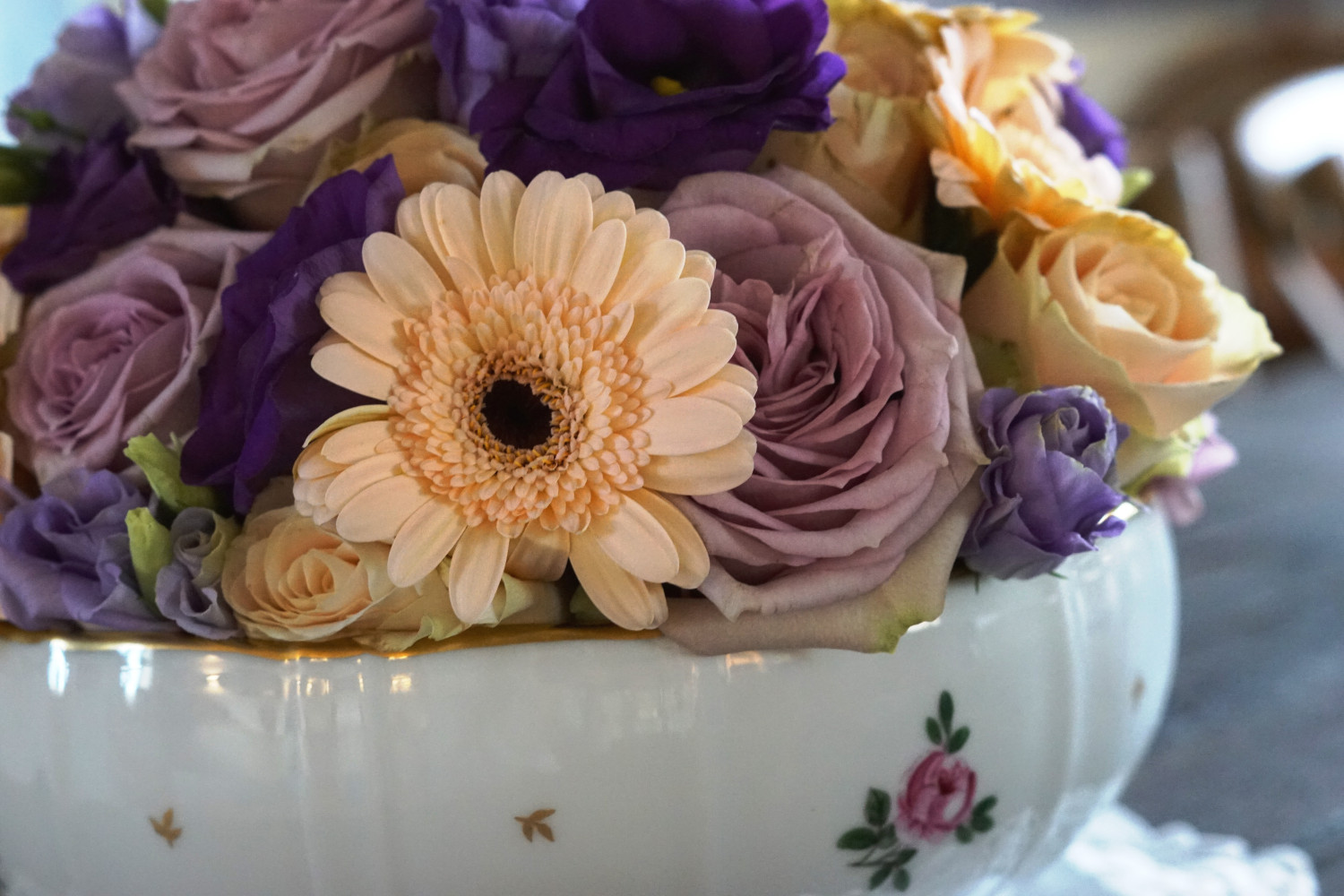 Blomsterbowlen tilføjer en unik æstetik til f.eks. et middagsbord og klæder især en mere klassisk bordopdækning med dug og gammeldags porcelæn.