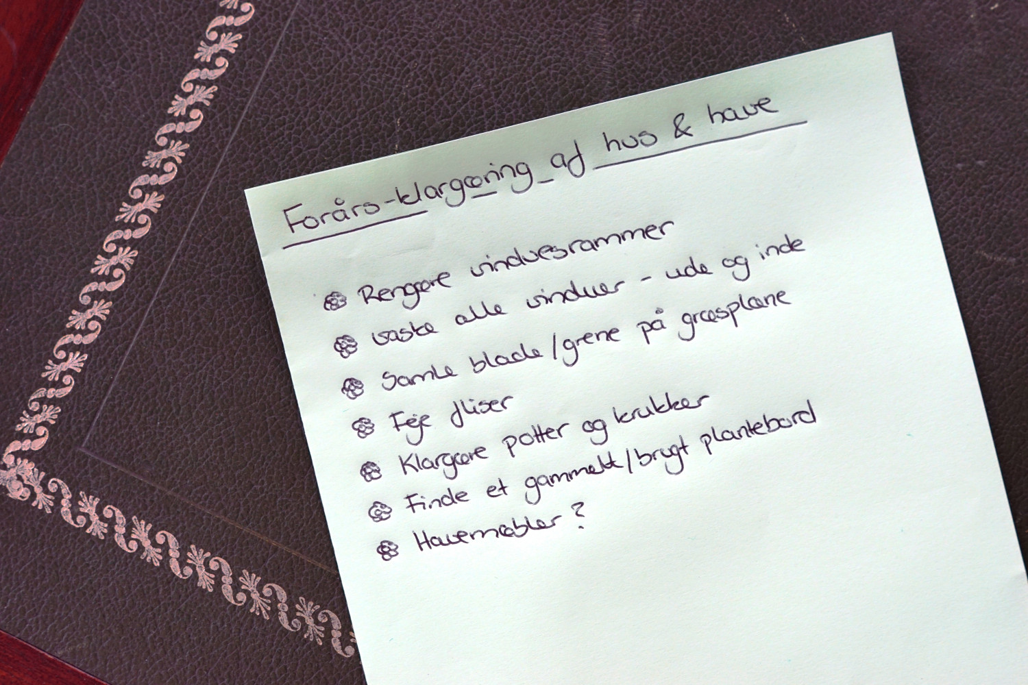 Denne weekend fik jeg også påbegyndt min liste over ting, der skal gøres klar ved hus og have her de første måneder af året. Den liste skal nok vokse rigeligt endnu. Det her var bare den første brainstorming.