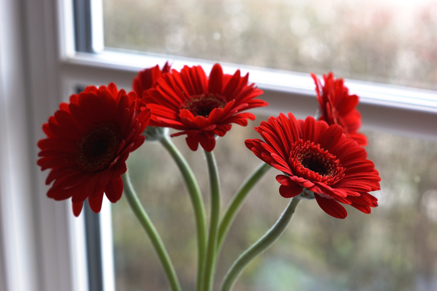 Gerbera fås i et væld af farver; fra pudderfarvede til gule og orange og lyserøde, lilla og – som her – røde blomster. På den måde er blomsten et dejligt farverigt indslag i hjemmet.