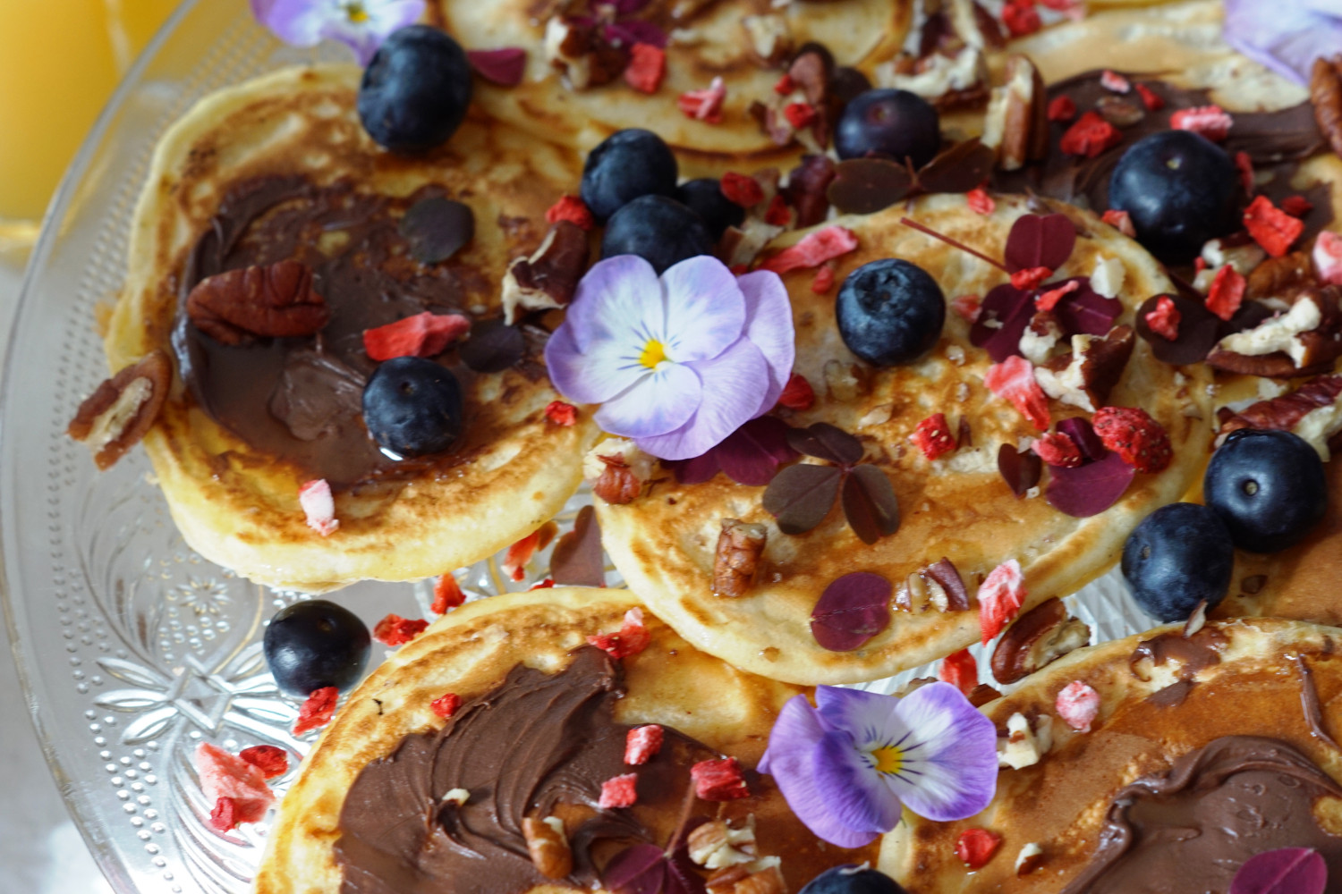 TIP! Server pandekagerne med sirup, blåbær, frysetørret jordbær og hakkede pekannødder til.