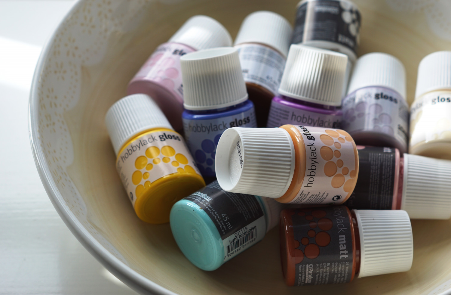 – Akrylmaling i ønskede farver (hvis du har helt små børn kan du med fordel købe fingermaling beregnet til småfolk – der findes malingtyper, som det ikke gør noget at barnet smager lidt på)