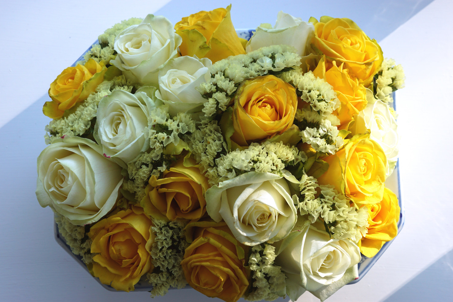 Det er blevet moderne at købe blomster, der er afskåret med helt kort stilk og arrangeret i små bokse til en såkaldt “flowerbox”. Blomsterhandleren har dem og jeg har også set dem i større supermarkeder.