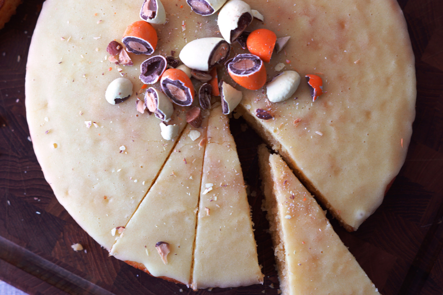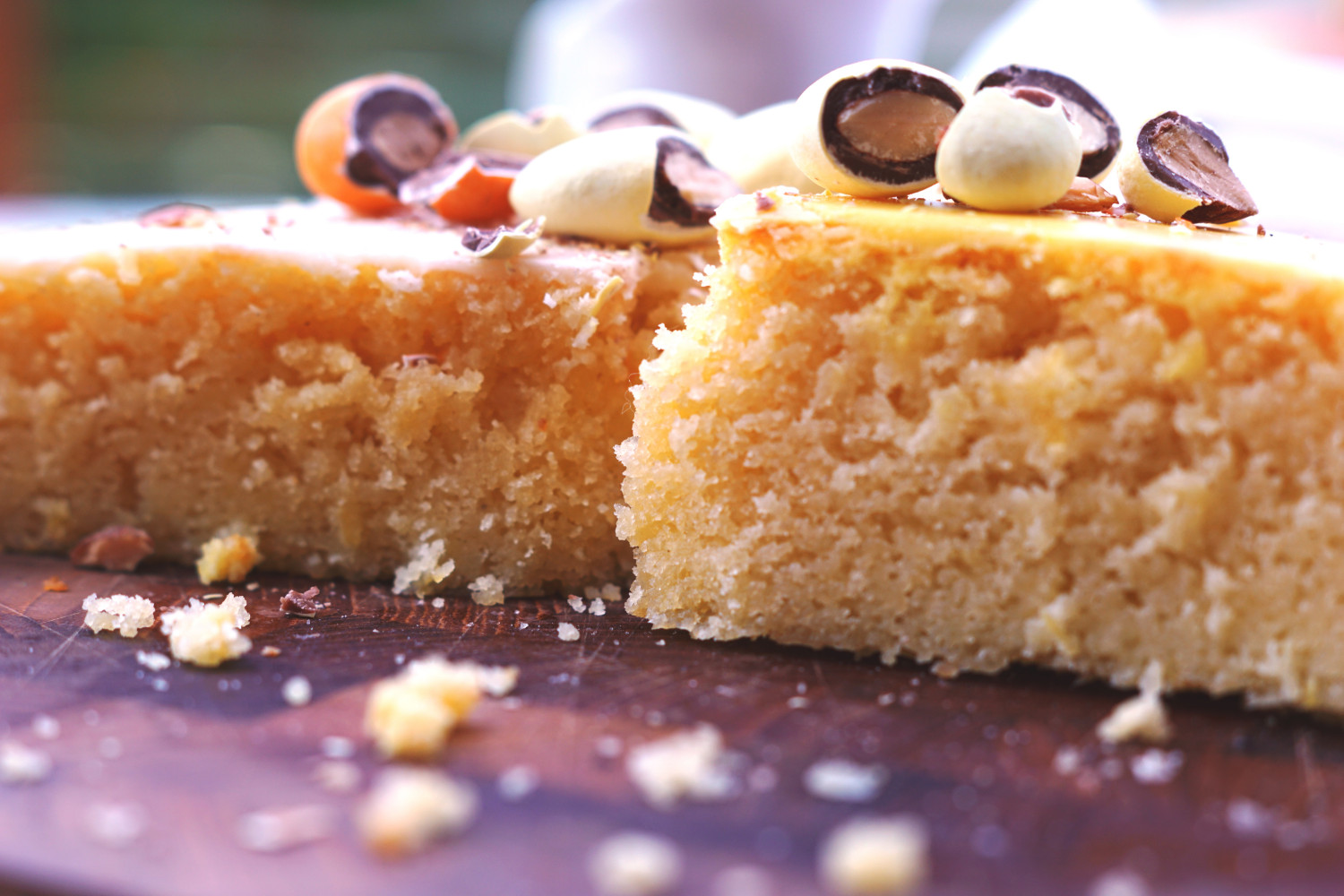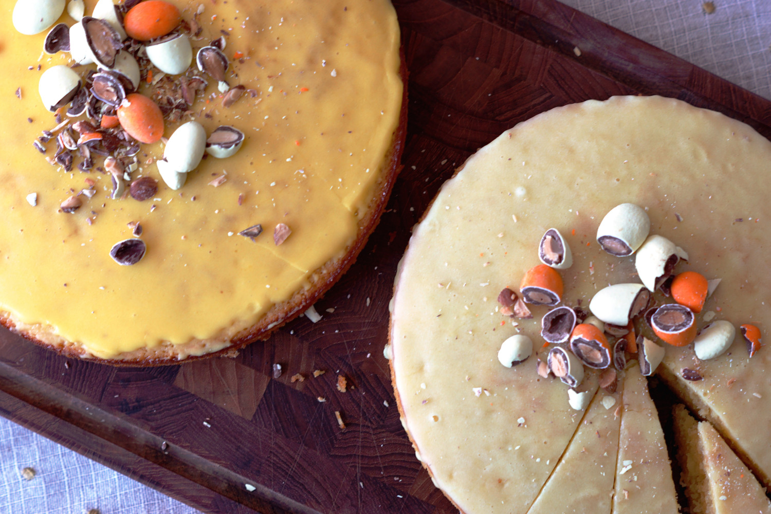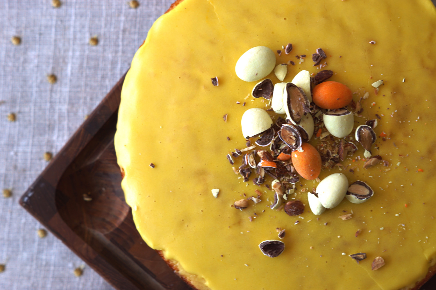 Den kan naturligvis serveres hele året (og bør det også!), men passer sig også smukt som en simpel påskekage med sin gule glasur.