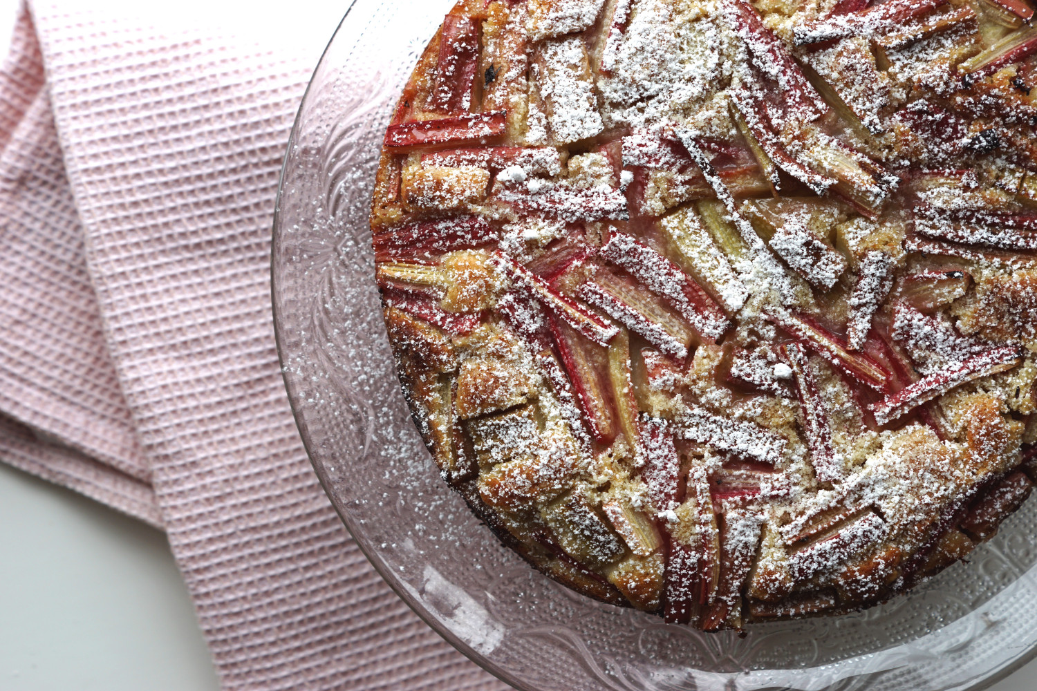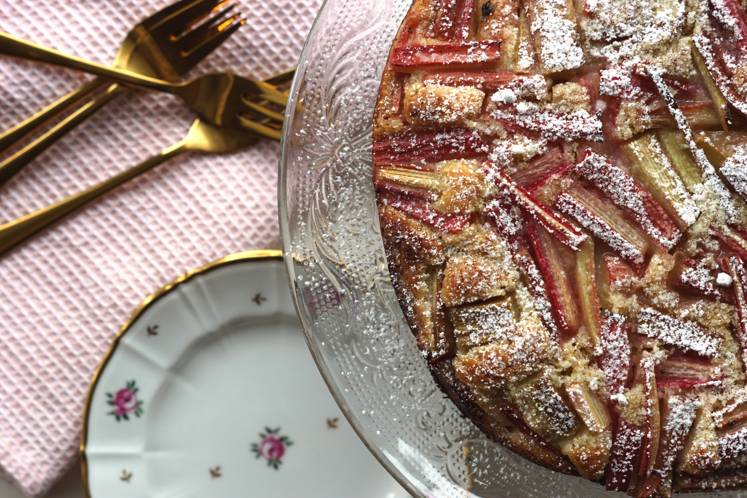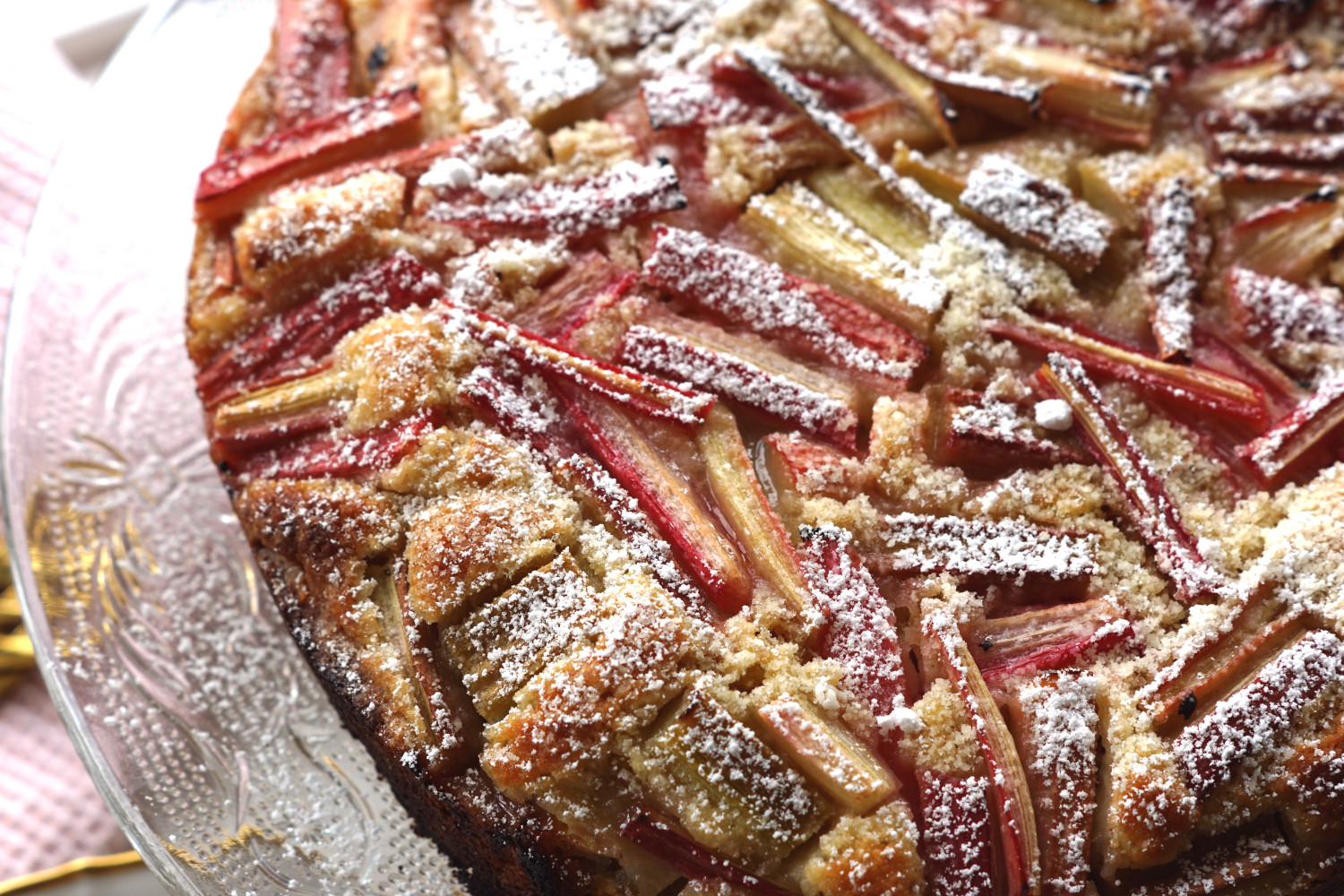 Måske derfor har jeg også fået stor efterspørgsel på opskriften fra familie og venner, så nu er den her altså: Den lækreste, luftigste rabarberkage med makroner, marcipan og mandler.