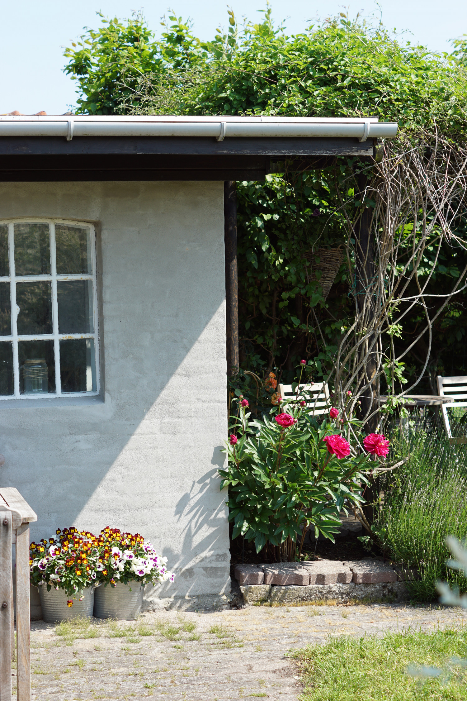 I hjørnet af vores grund gemmer der sig dog et lille stykke, som er ekstra idyllisk, hvis du spørger mig: vores anneks og en halvt-overdækket rosenhave som holder til mellem annekset og drivhuset.