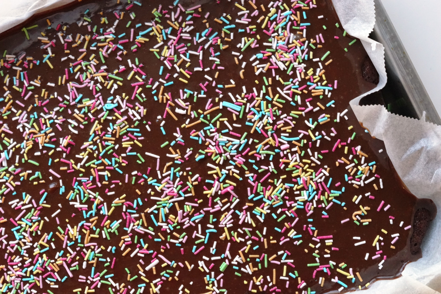 Lad toppingen køle ovenpå kagen i 15 minutter før du evt. drysser med tivolidrys, kakaospåner, kokosmel eller andet.