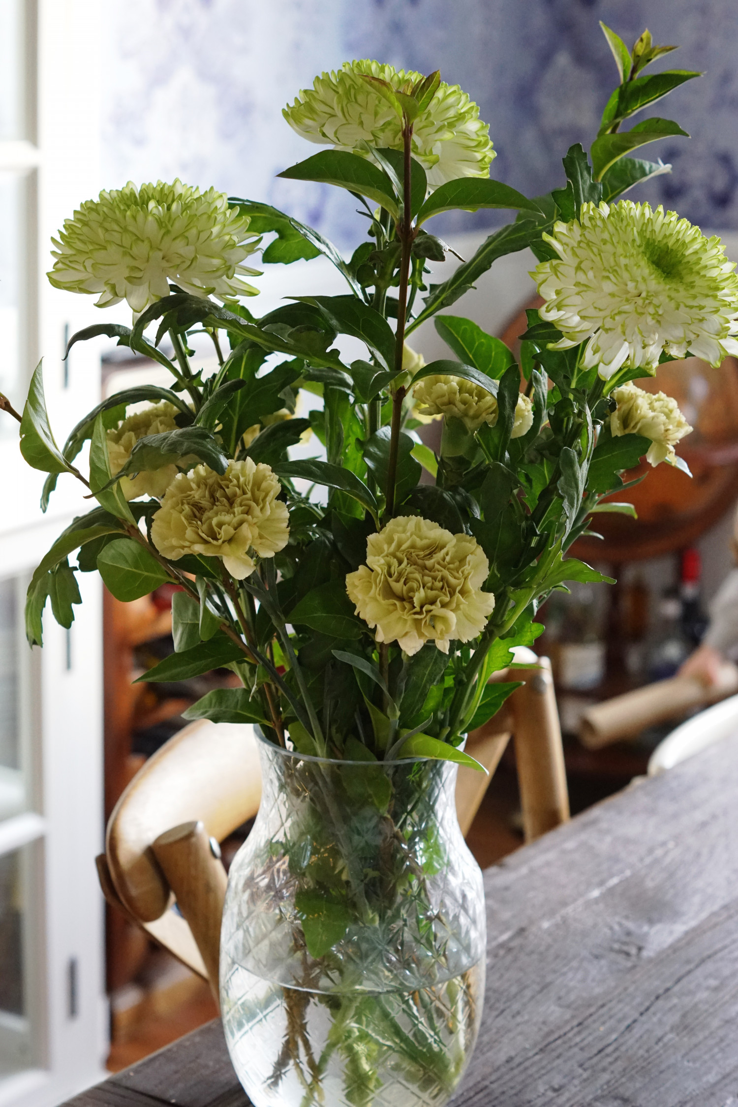 LIGE OM LIDT skal stuerne herhjemme hos os fyldes af massevis af jule- og vinterdekorationer, men inden da nåede der altså at blive plads til en skøn grøn buket.