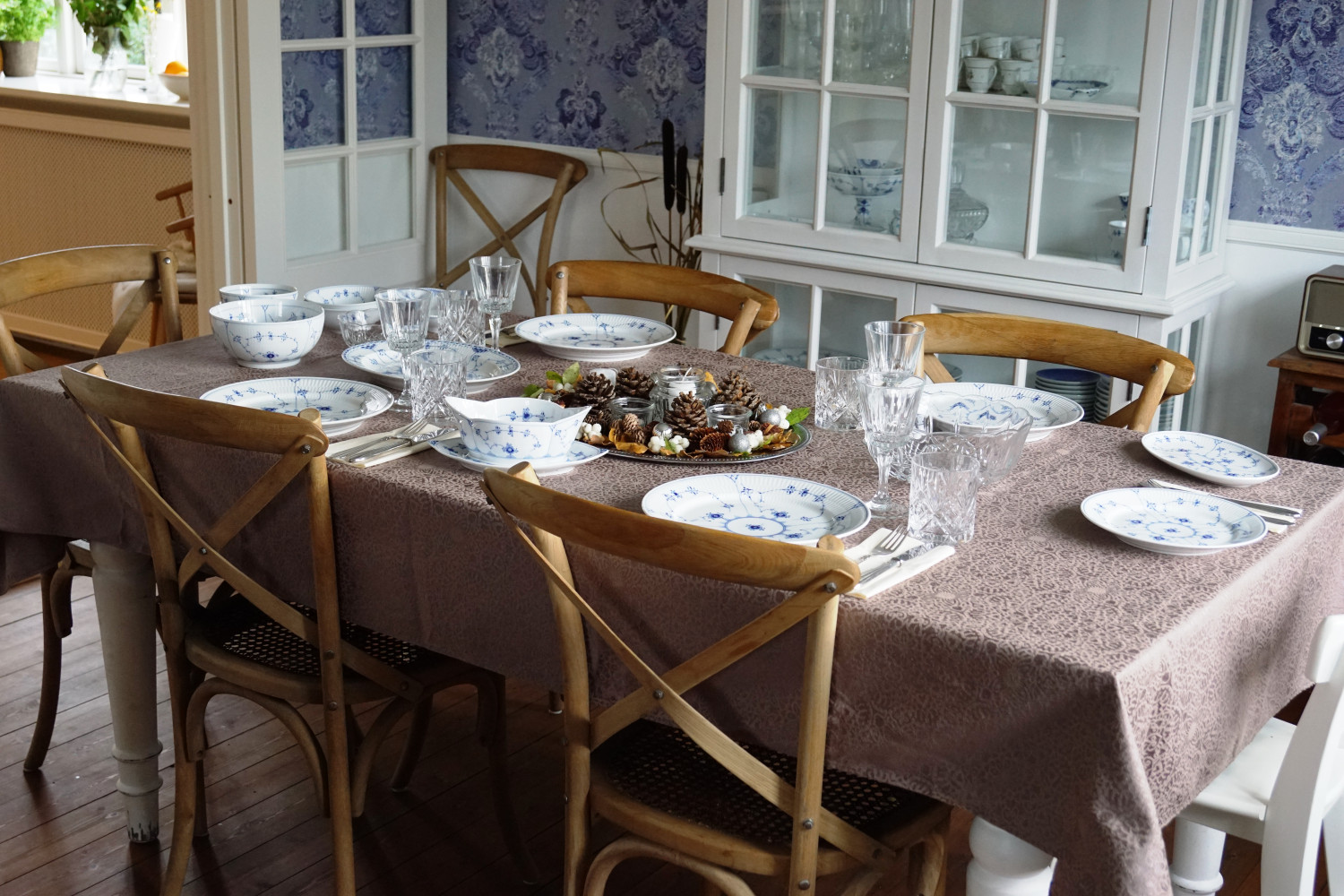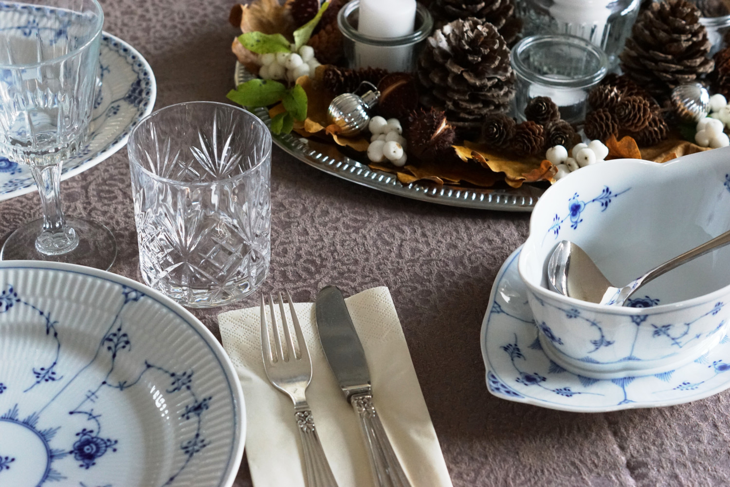 Nedenfor kan du se borddekorationen, da jeg er i fuld gang med at dække op til middagsgæster.