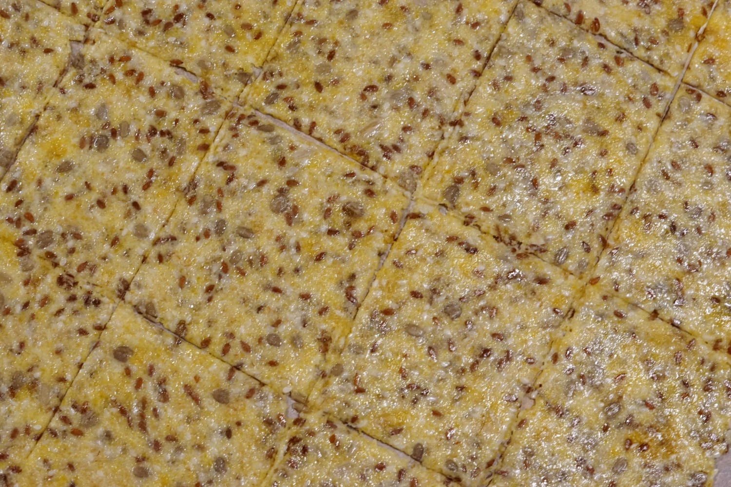 Opskrift på knækbrød m. majs og hørfrø (giver 2 plader – 40-48 stk. knækbrød afhængig af størrelse)