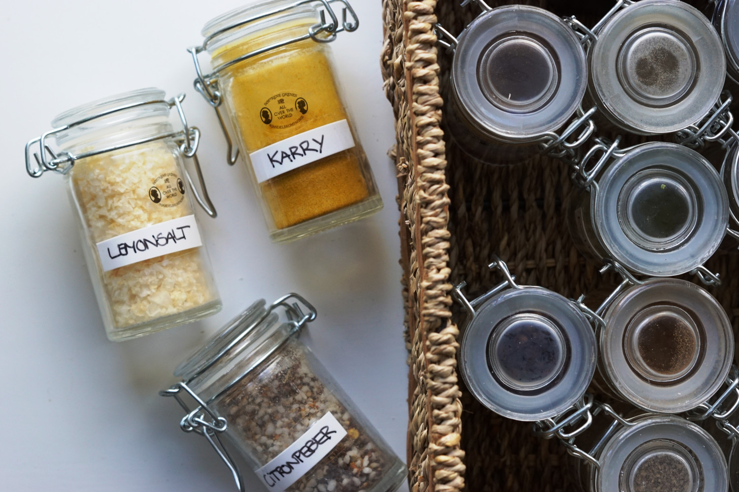 I dette indlæg vil jeg vise, hvordan jeg opbevarer forskellige kolonialtørvarer som gryn, mel, krydderier, kerner og nødder mv.