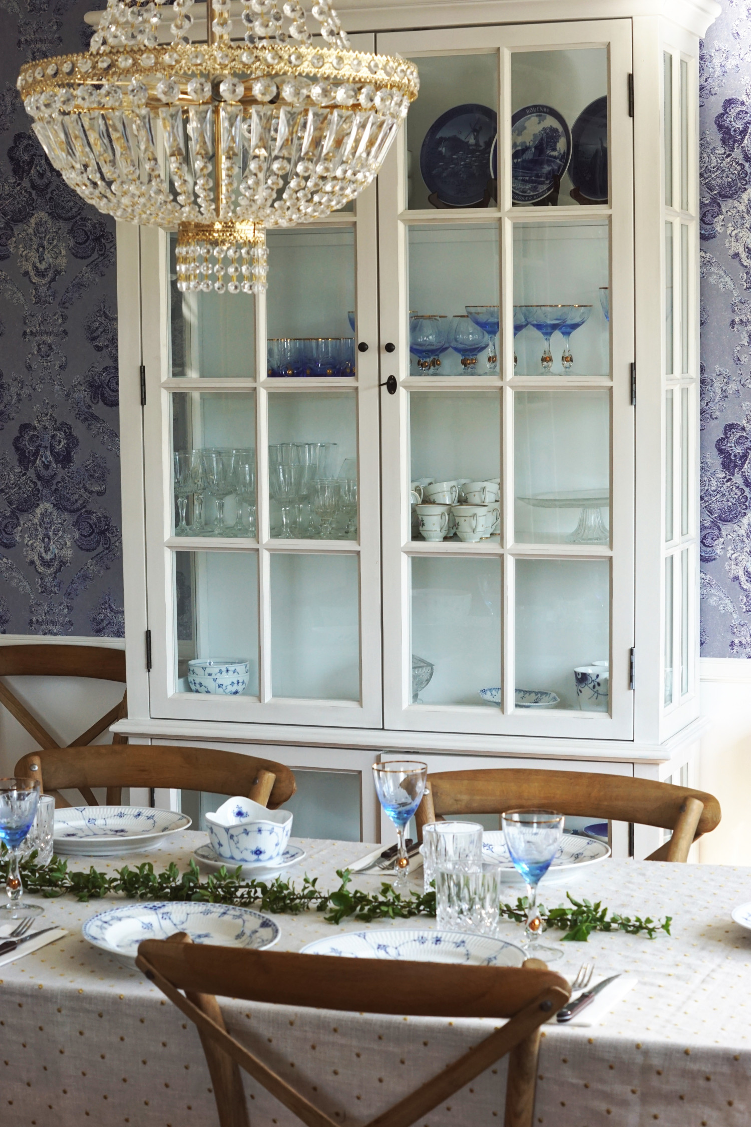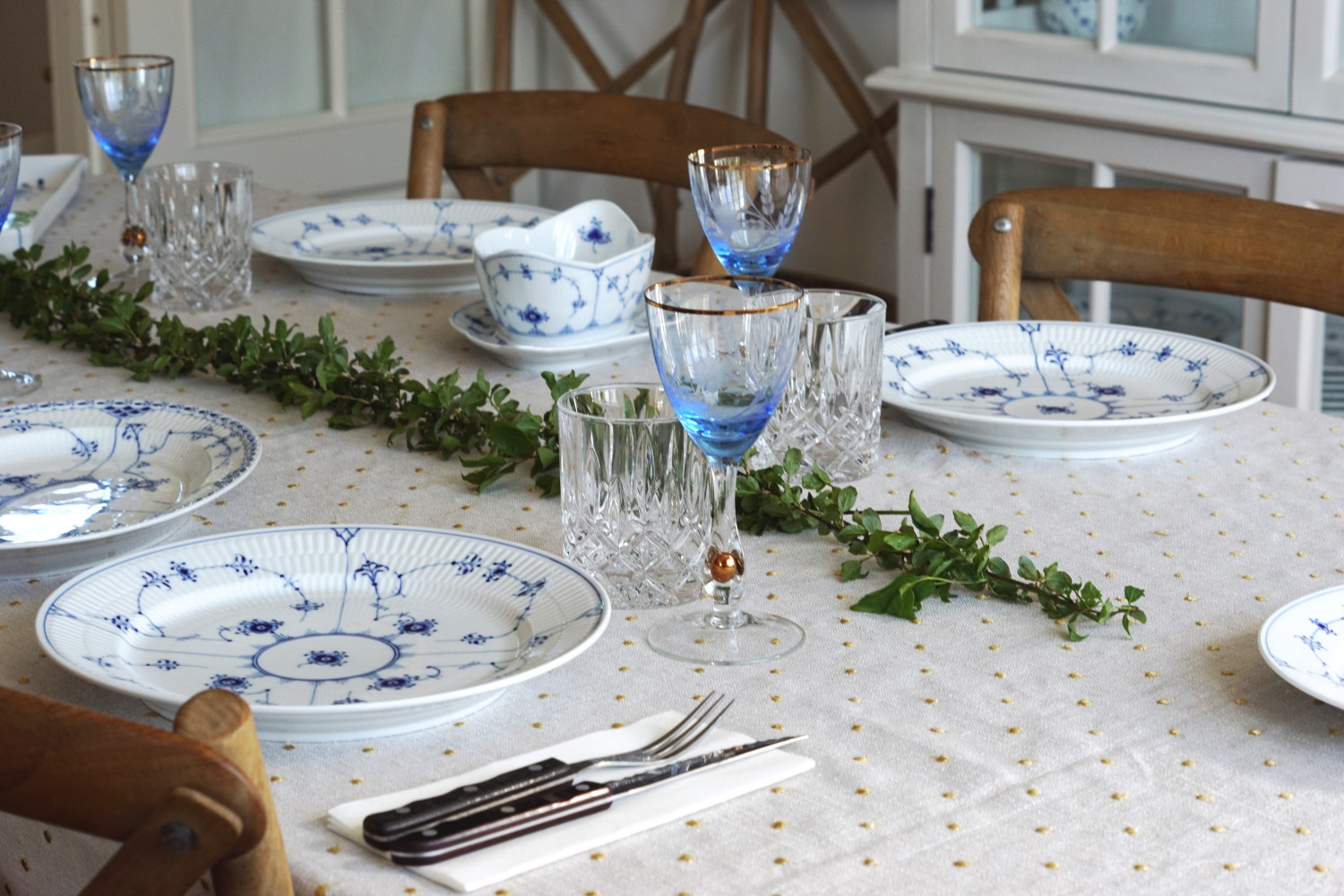 TIP! Dæk et enkelt og elegant bord til din påskemiddag. Dan en ranke af grønne grene midt på bordet som simpelt bordpynt.
