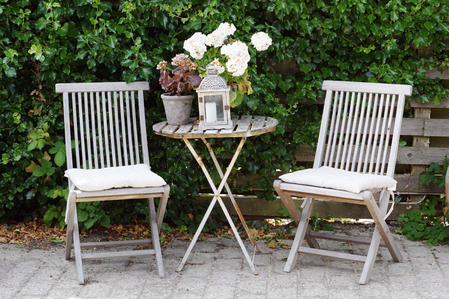 Terrassen ligger dejligt afskærmet af huset, skur og stakit, hvilket danner den hyggeligste krog, hvor der næsten altid er helt læ.
