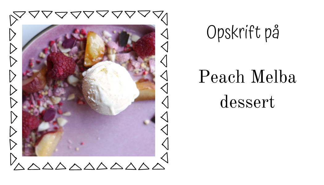 Afslut med min fortolkning af en peach melba dessert med bagte karameliserede ferskener, vaniljeis, friske hindbær på en bund af sprød karamel og chokolade.