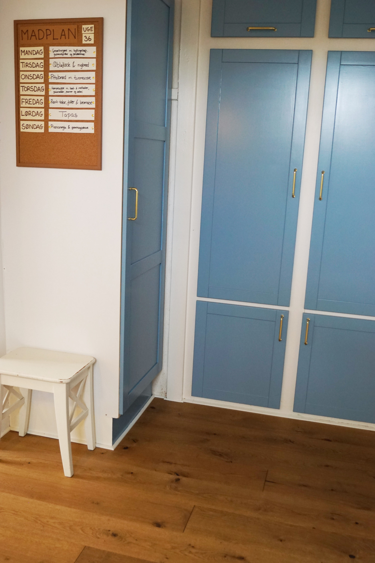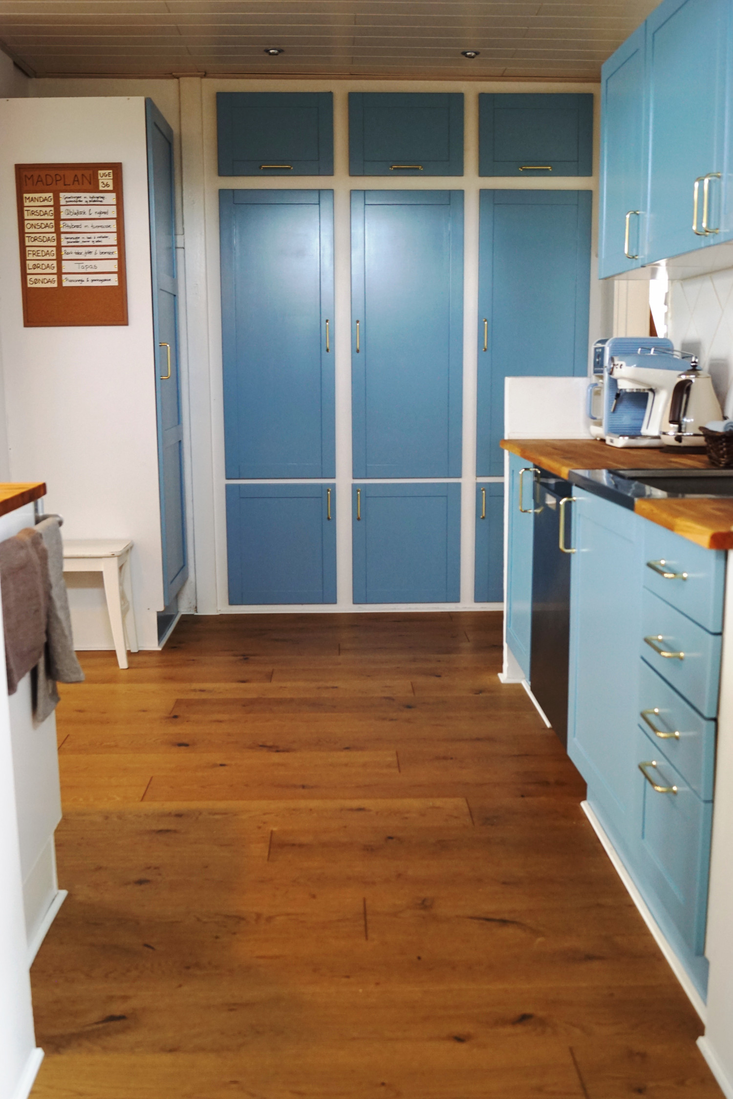 Køkkenet er hjertet og midten i vores hus og et sted jeg bruger enormt meget tid. Det har været vigtigt for mig, at det er et rum der kan bruges, og hvor børnene gerne må deltage i madlavningen eller lege på gulvet imens jeg laver mad. Derfor ville jeg ikke have et helt nyt køkken, som jeg skulle gå og være øm over, hvis børnene satte syltetøjsfingre på skufferne, spildte på bordpladen eller kørte ind i en køkkenlåge med en gåvogn.