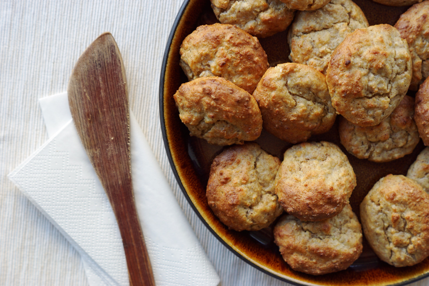 Brug resterne fra en portion havregrød til at bage de skønneste grødboller i mini version – dejligt krydrede med nellike, kardemomme og kanel. De er usaltede men sødet en smule med lidt revet æble.