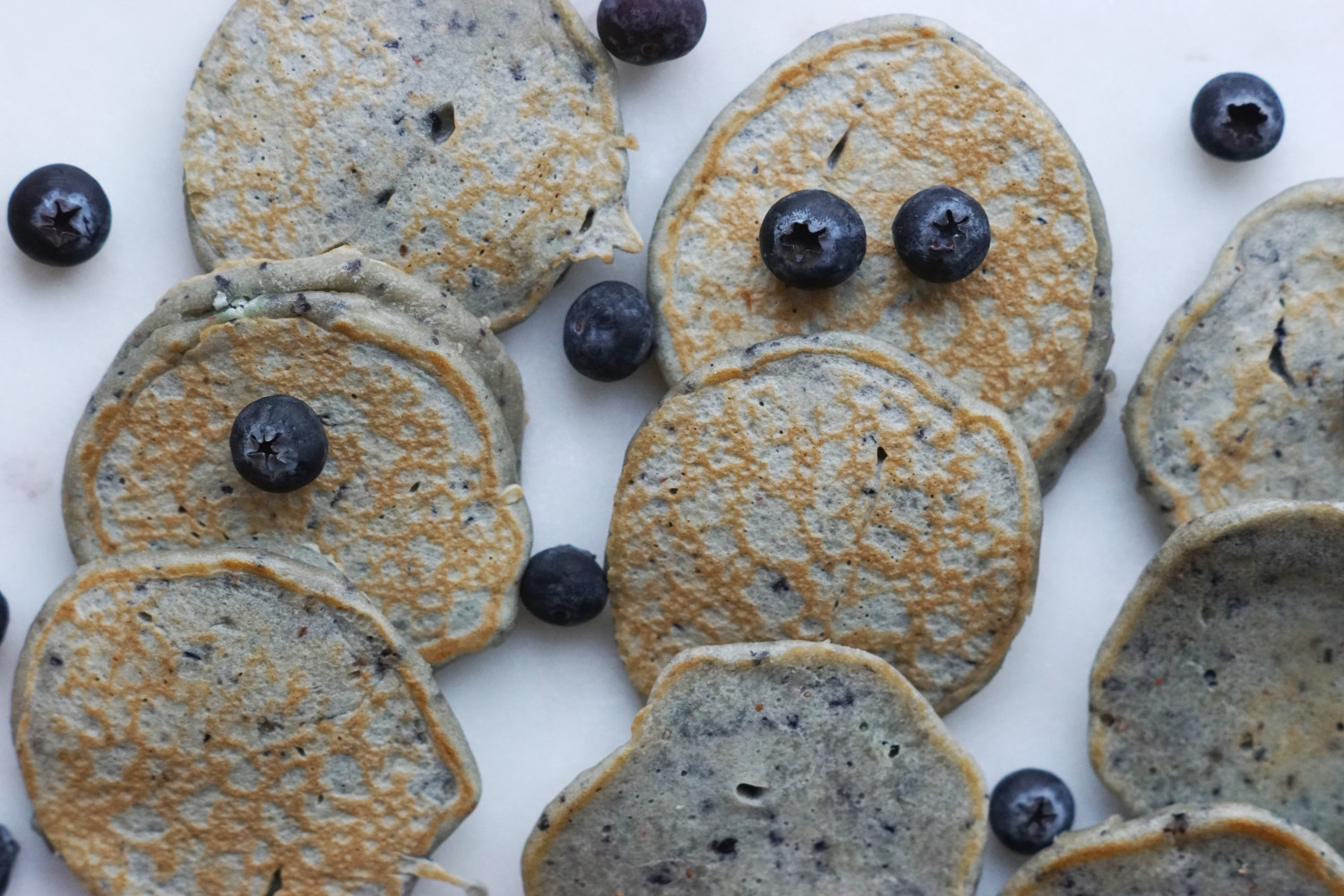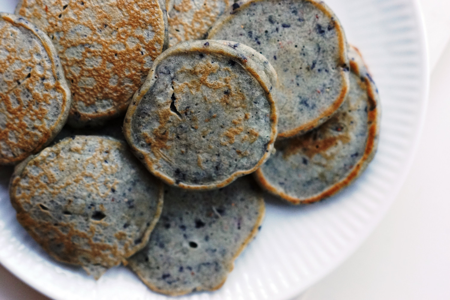 Lækre helt bløde og svampede pandekager med flot blå-lilla farve.