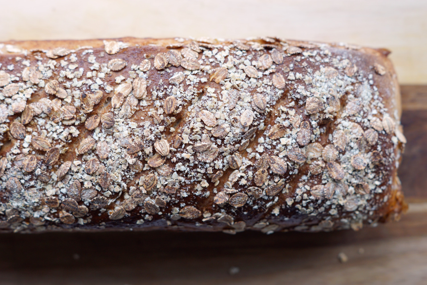 Pensl med æg og drys gryn ovenpå inden du snitter ridser øverst i brødet.