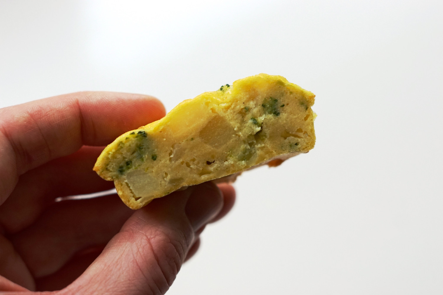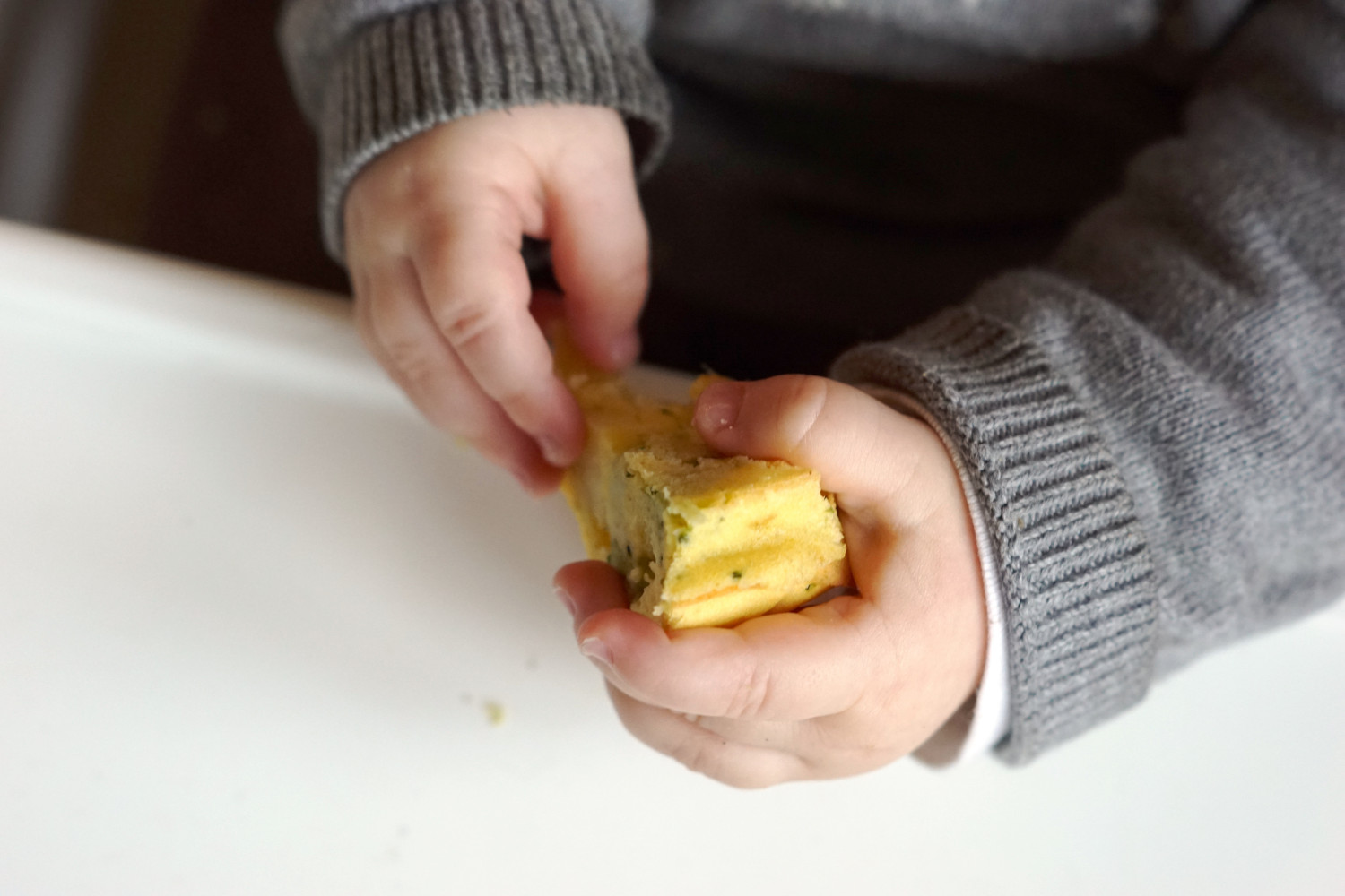De er skærefaste i konsistensen så de både kan halveres, skæres i stave eller i små bidder uden at smuldre. Bløde at tygge og sidde med for barnet, og kan spises fra 6 mdr. (udelad evt. osten). Vær dog OBS på at konsistensen ikke er helt “fin” blendet, men indeholder stykker af kartoffel og broccoli, som gør dem lidt grovere, men stadig nemme at håndtere uden tænder.