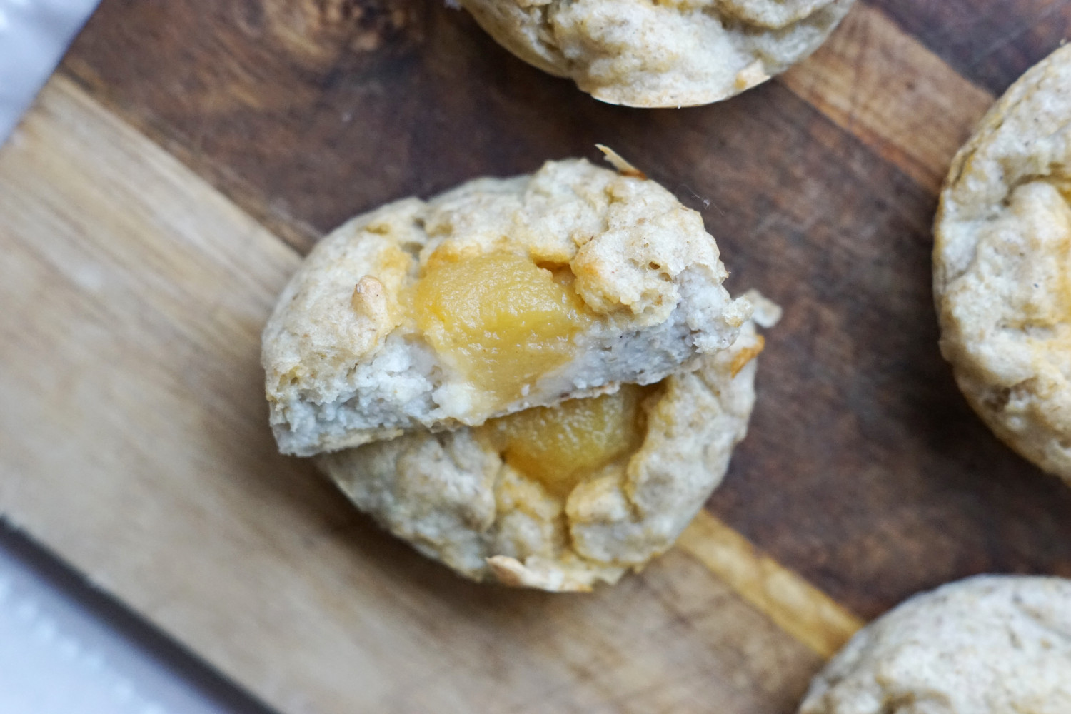 Jeg giver dem en klat frugtmos i midten. Brug bare en af de der købe-smoothies (denne er den billige fra REMA 1000 med æble). Den er også nem at dosere mosen med.