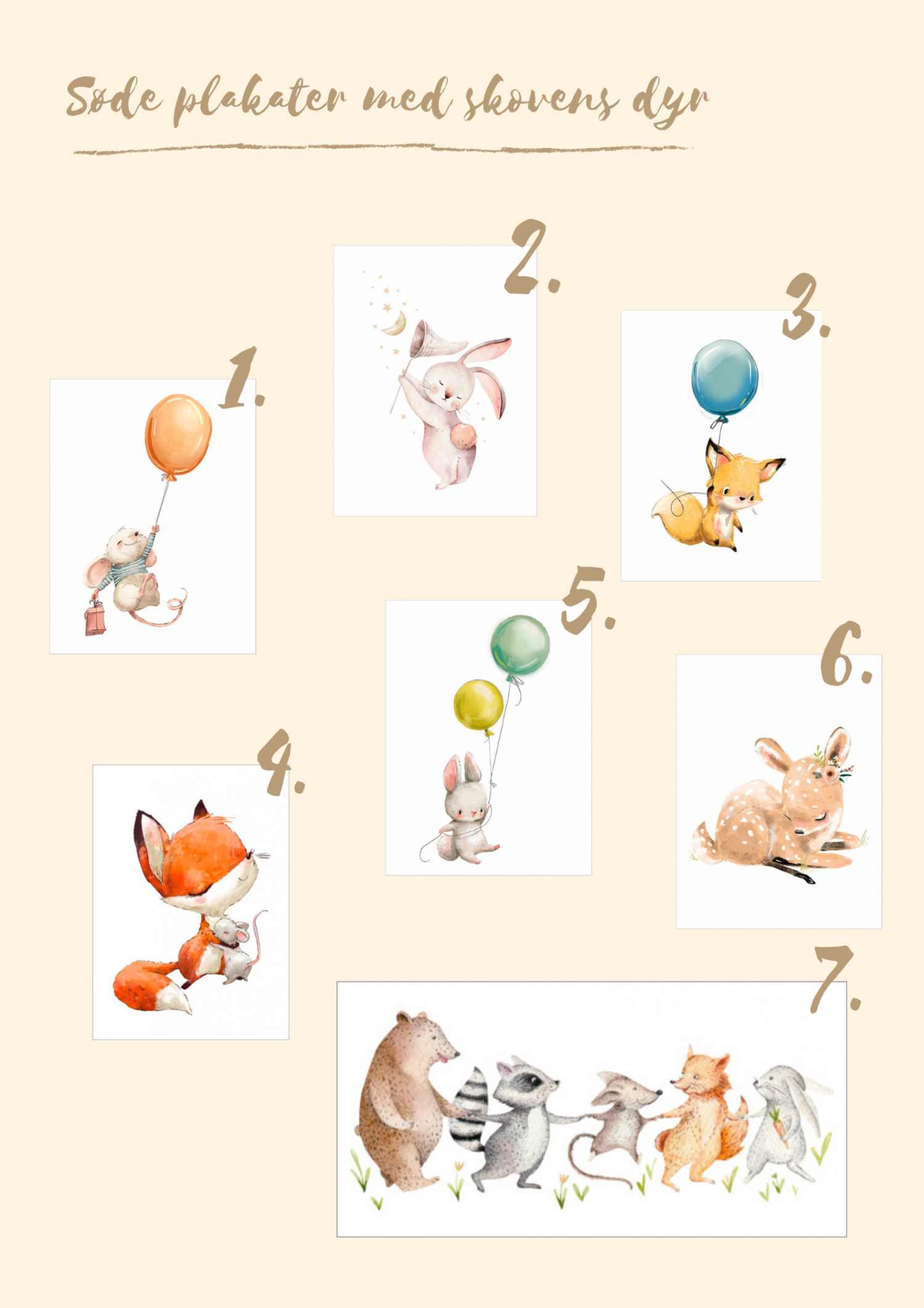 1. Mouse with balloon, Kidz Collection // 2. I catch you a star, Kidz Collection // 3. Little fox with balloon, Kidz Collection // 4. I tykt og tyndt, Kidz Collection // 5. Bunny with balloons, Kidz Collection // 6. Sleeping fawn, Kidz Collection // 7. Kredsdans, Kidz Collection