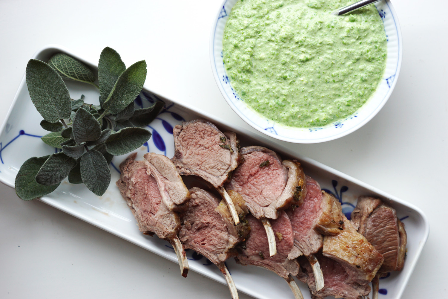 Forkæl dine gæster med dette overdådige måltid med lammekrone marineret i salvie, rosmarin og citron serveret sammen med en cremet ærtedip. For at fuldende middagen foreslår jeg, at du serverer sammen med pomfritter af sødkartoffel, en hjemmerørt persillemayo og lækker middelhavsinspireret salat.