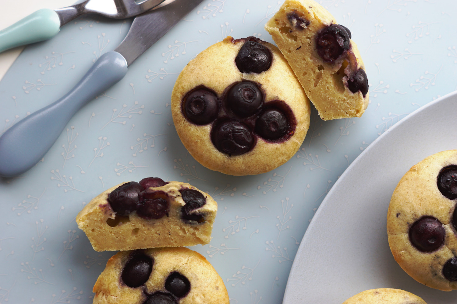 De her minder om en mellemting mellem en pandekage og en scone, og de er på rekordtid blevet et kæmpe hit her hjemme hos vores yngste. De er nemme at bage, og nemme for det lille barn at tygge. Skær dem ud i stave eller skær dem over som en bolle og kom smør på (de smuldrer ikke, så de er nemme at skære).