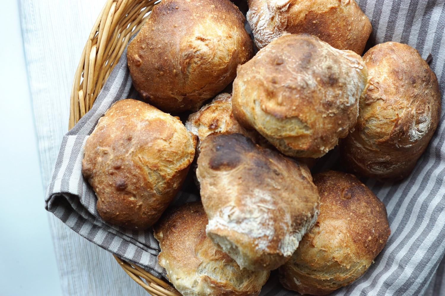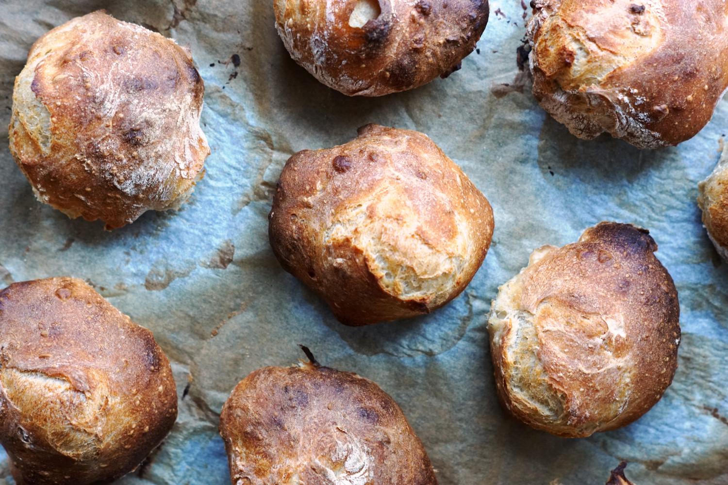 Sæt straks bollerne ind i ovnen (næstøverste rippe) og giv dem 12-15 minutter til de lyder hule når du banker på dem.