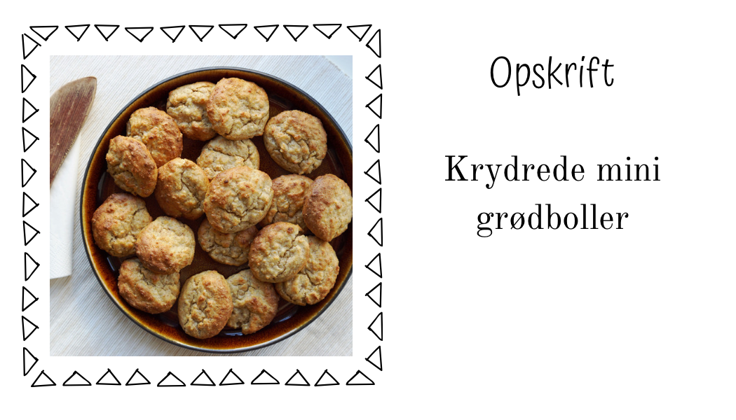 - Øllebrødsklatkager m. pærestykker, hindbærpuffs og sveskemos