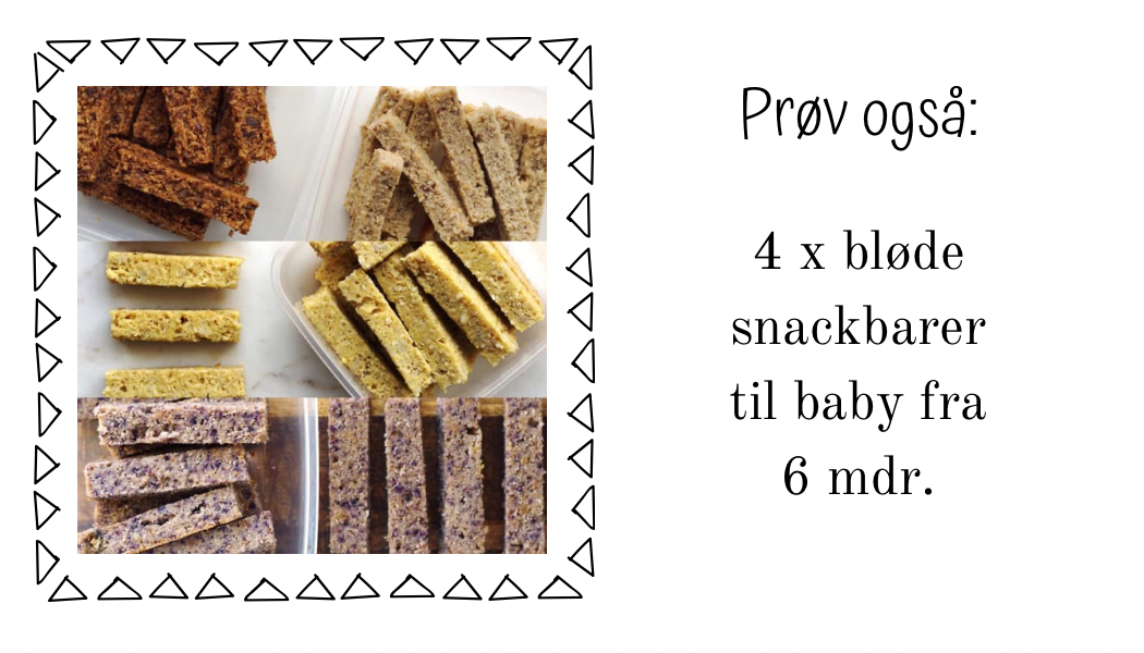 Endnu en opskrift på bløde barer der er nemme at tygge og håndtere i munden for de aller mindste.