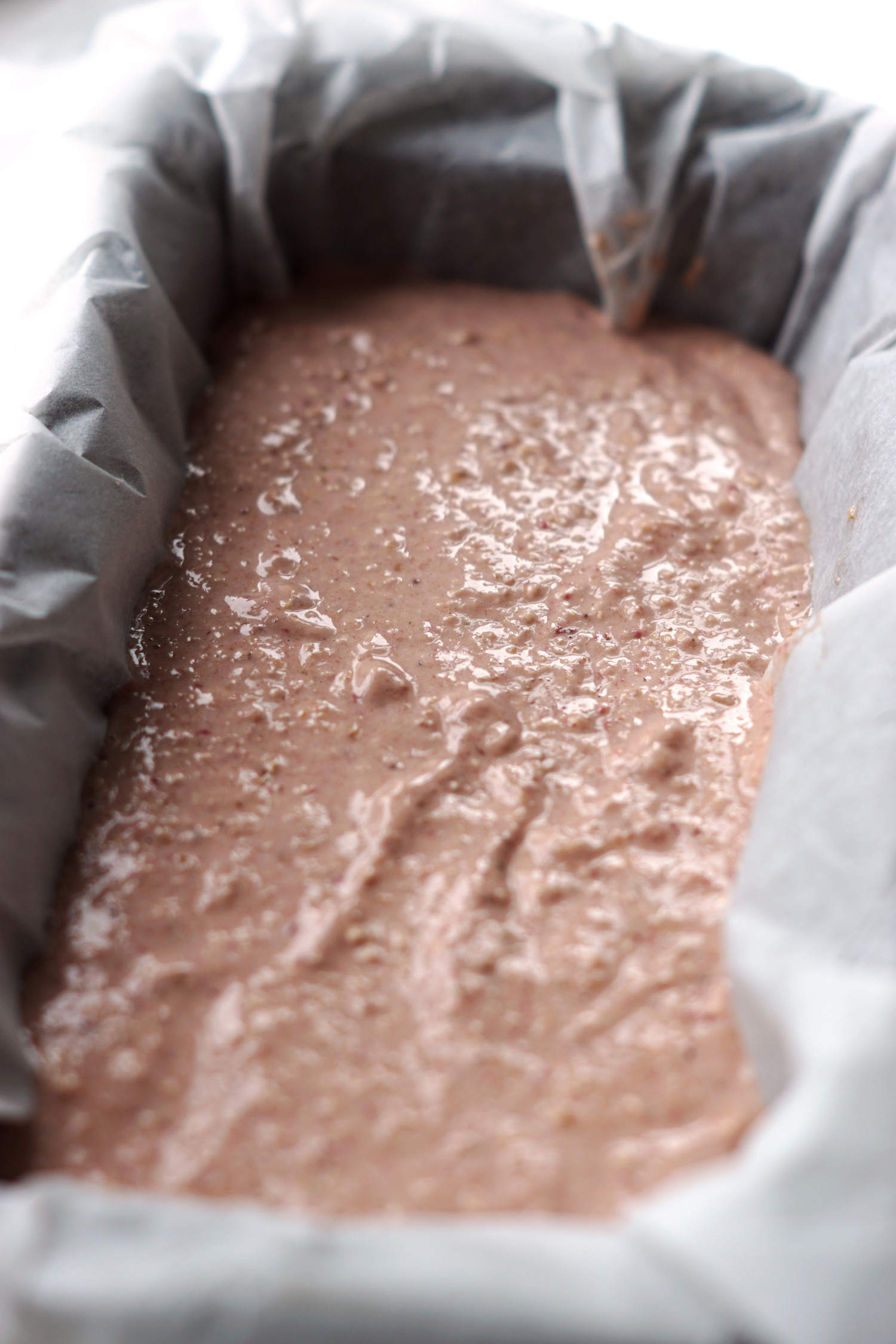 fordel i en lille franskbrødform beklædt med bagepapir.