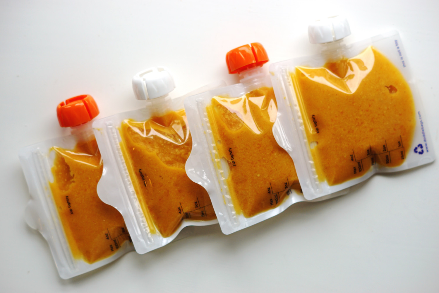 Perfekt til at fylde på genanvendelige smoothieposer til det lille barn.