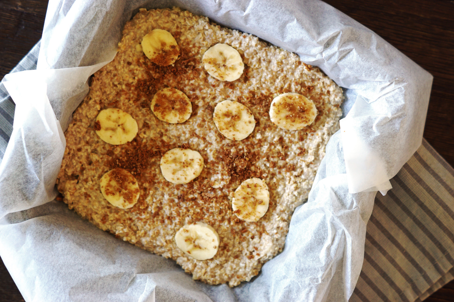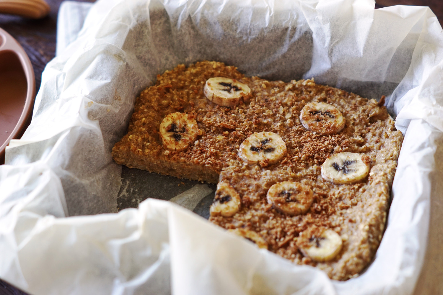 Opskrift på bagt havregrød (lille bradepande – her 20×20 cm)