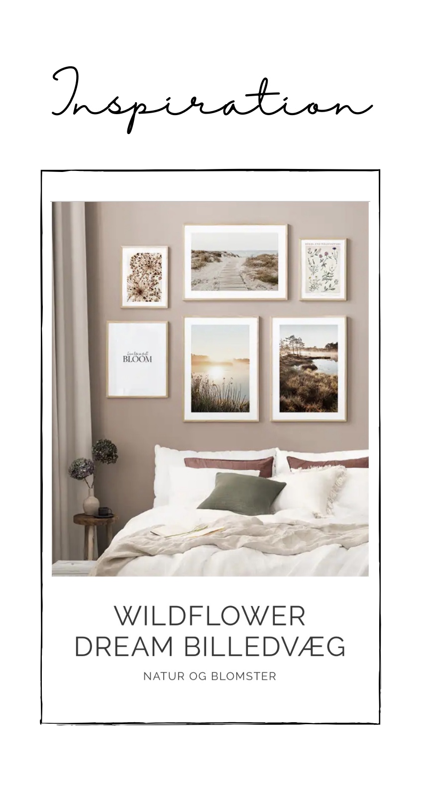 Desenio har masser af inspiration til netop billedvægge, og sammensætningen af dem, så de får et smukt, fængende og harmonisk udtryk. Inspiration til konkrete billedevægge kan findes både på deres hjemmeside og deres Instagram (@desenio).