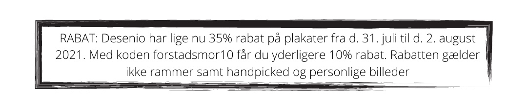 Desenio har nemlig 35% rabat på plakater i dag og frem til 2. august. Med koden ‘forstadsmor10’ får du yderligere 10% rabat, hvis du også skal shoppe plakater.