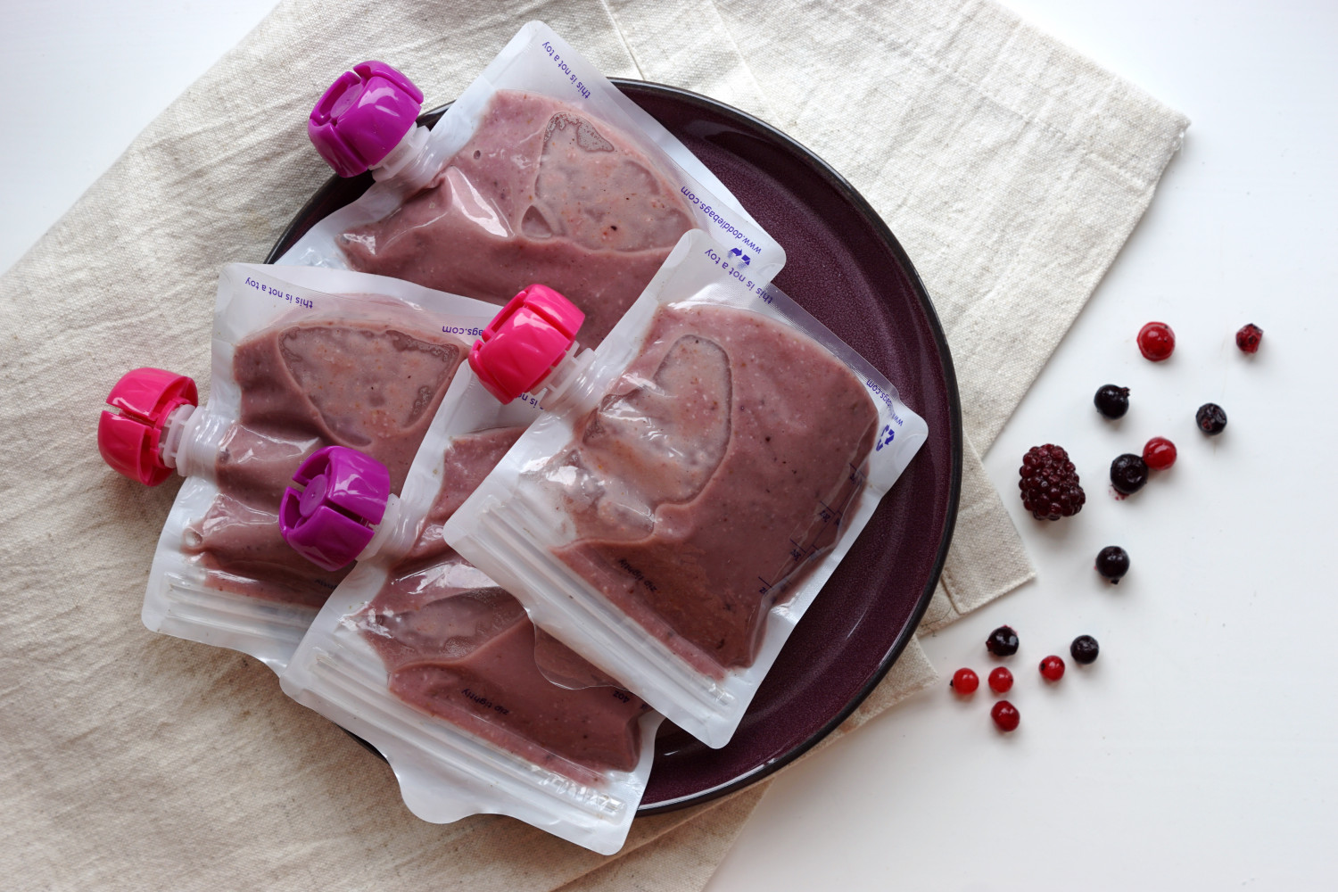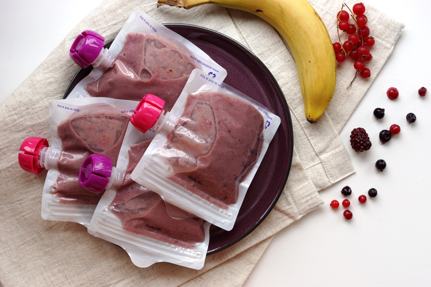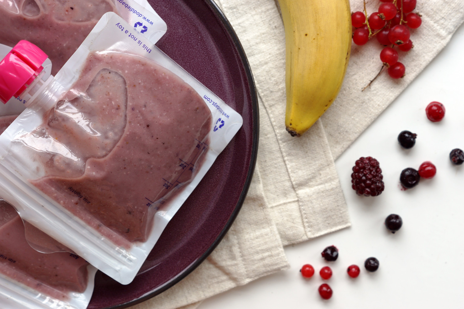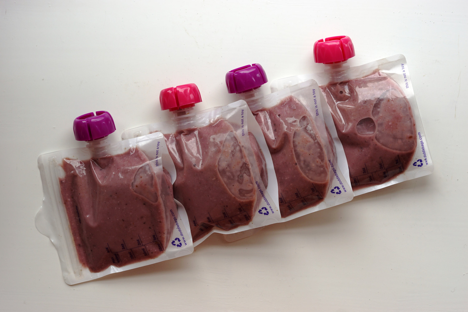 Fordel i genanvendelige smoothieposer og kom straks i køleskab.