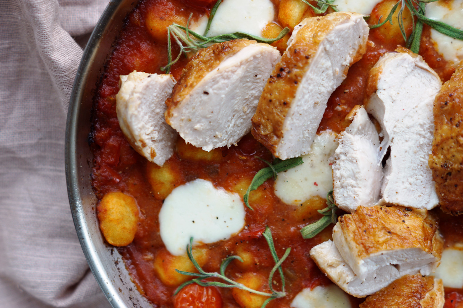 Denne italiensk-inspirerede ret er rigtig lækker hverdagsmad med dejlig krydret tomatsauce, saftig kylling og smeltet ost. Et rigtigt hyggemåltid til hele familien og som nemt at lave.