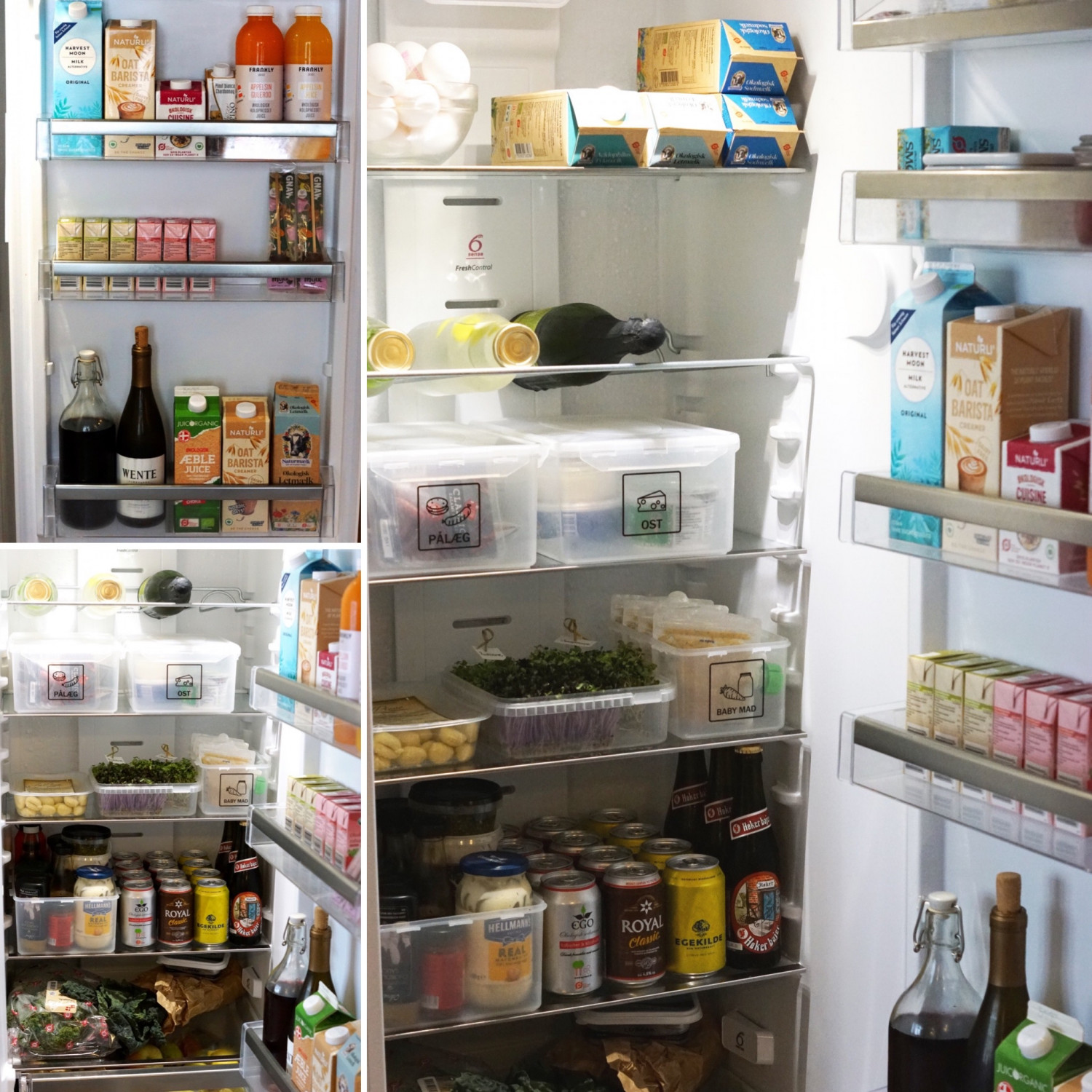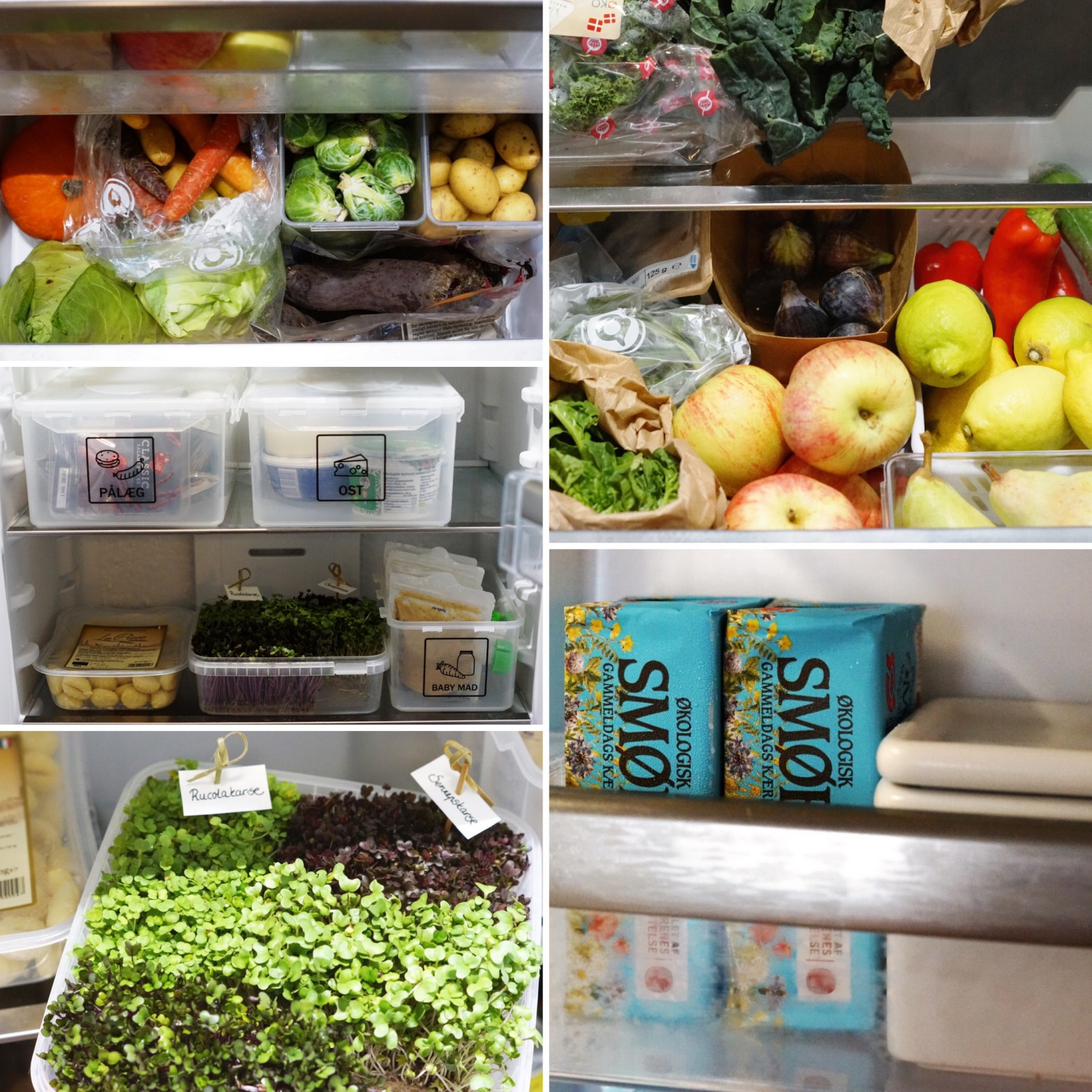 TIP! Køleskabet fyldt godt op efter Aarstiderne var forbi. Jeg går meget op i at holde mit køleskab rent, ryddet op og organiseret. Når man køber gode råvarer holder de sig bedst muligt sådan. Tjek de forskellige kølezoner for dit køleskab. Det kan være meget forskelligt hvor i køleskabet producenten anbefaler frugt, grønt, fisk og mejeri opbevares i forskellige køleskabsmodeller. Når man holder orden gør det maden langt mere inspirerende at gå til og man har overblik over, hvad man har og kan nemmere spise op. På den måde minimeres madspildet.