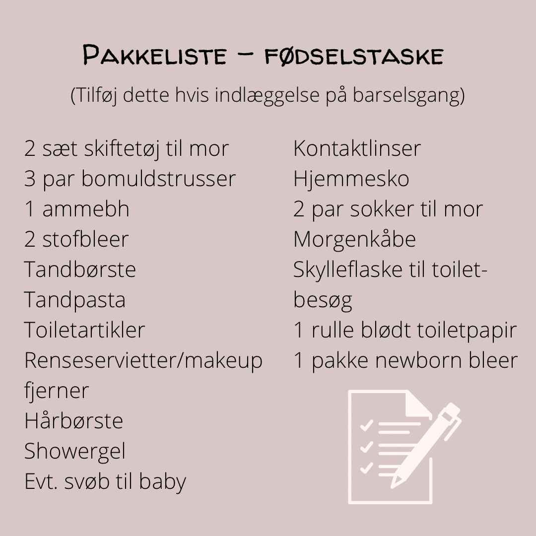 Nogle har den stående klar i rigtig god tid, imens andre (mig selv inklusiv) er måske lidt doven til at få den pakket. Ved første barn var den klar månedsvis før hos mig. Her i tredje graviditet har jeg konstant haft overspringshandlinger der har ledt mig udenom pakning af den famøse taske.