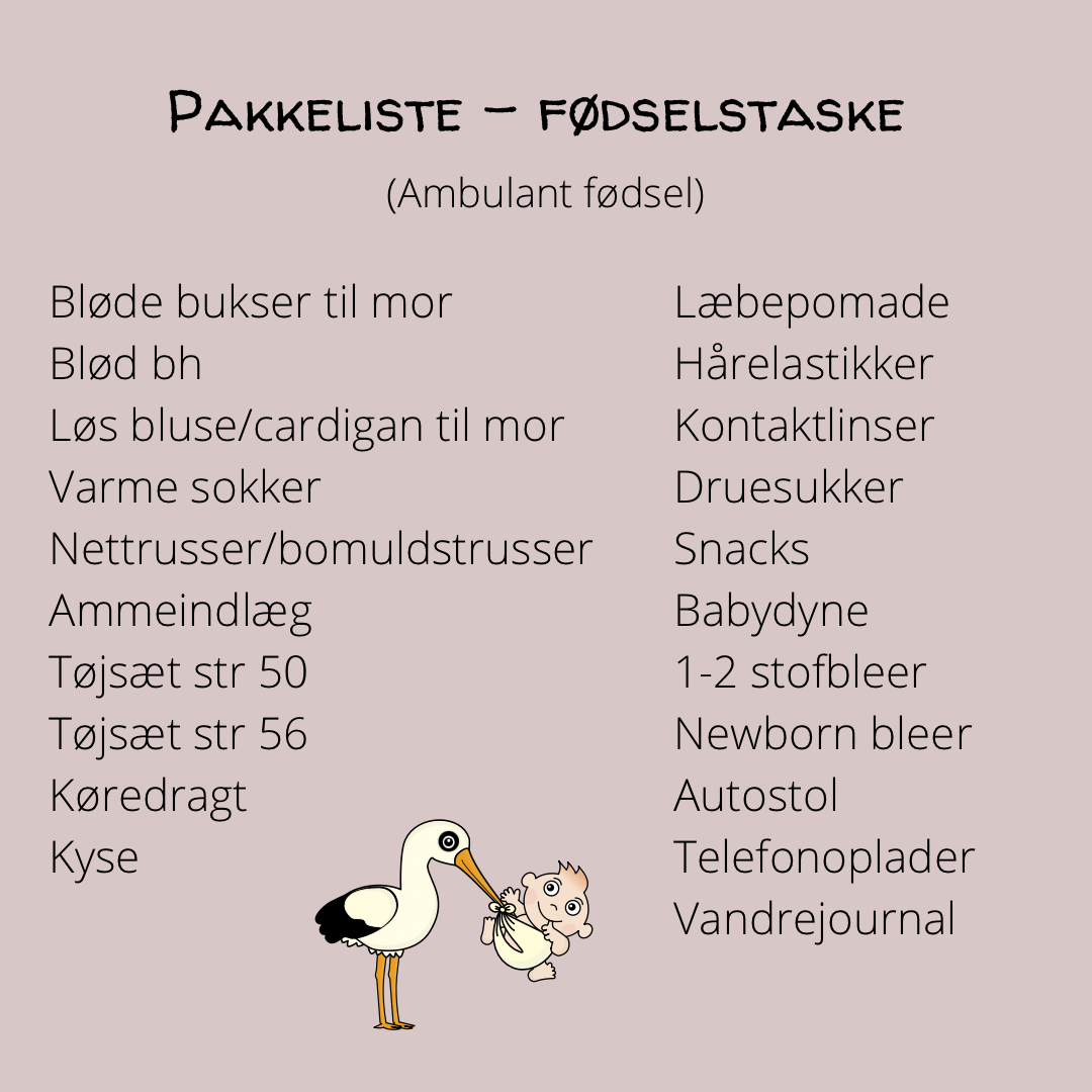 I indlægget her deler jeg, hvad jeg har med til det der kaldes en ambulant fødsel. Altså hvor jeg forventer at tage hjem 4-5 timer efter veloverstået fødsel. Skal man indlægges på et barselsafsnit, så skal man have lidt mere med. Det har jeg også en liste over som du kan se længere nede.