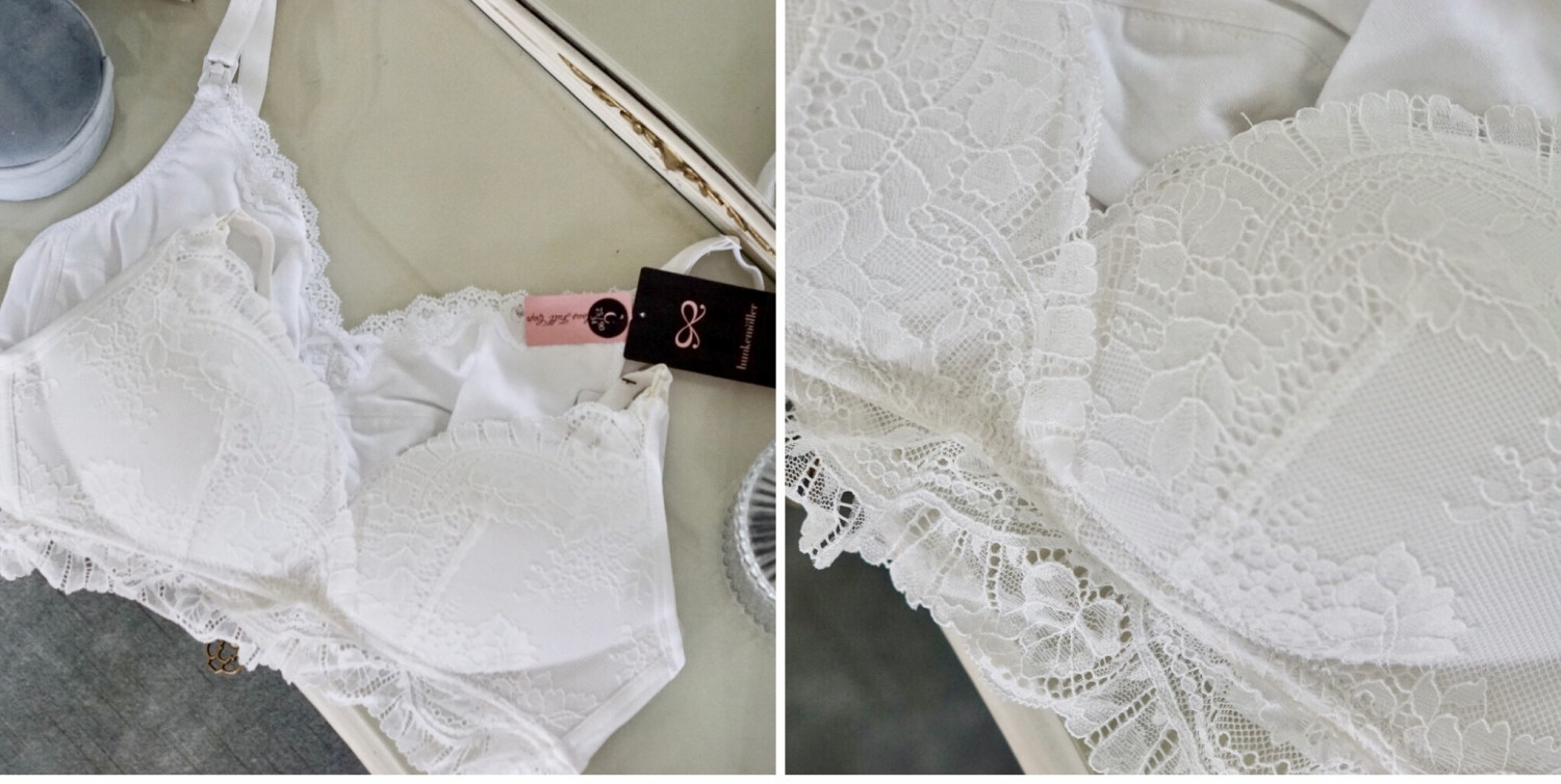 Jeg har bl.a. disse to amme bh’er fra Hunkemöller – en hvid amme bh med sløjfe detalje og en hvid formstøbt amme bh m. blonde.