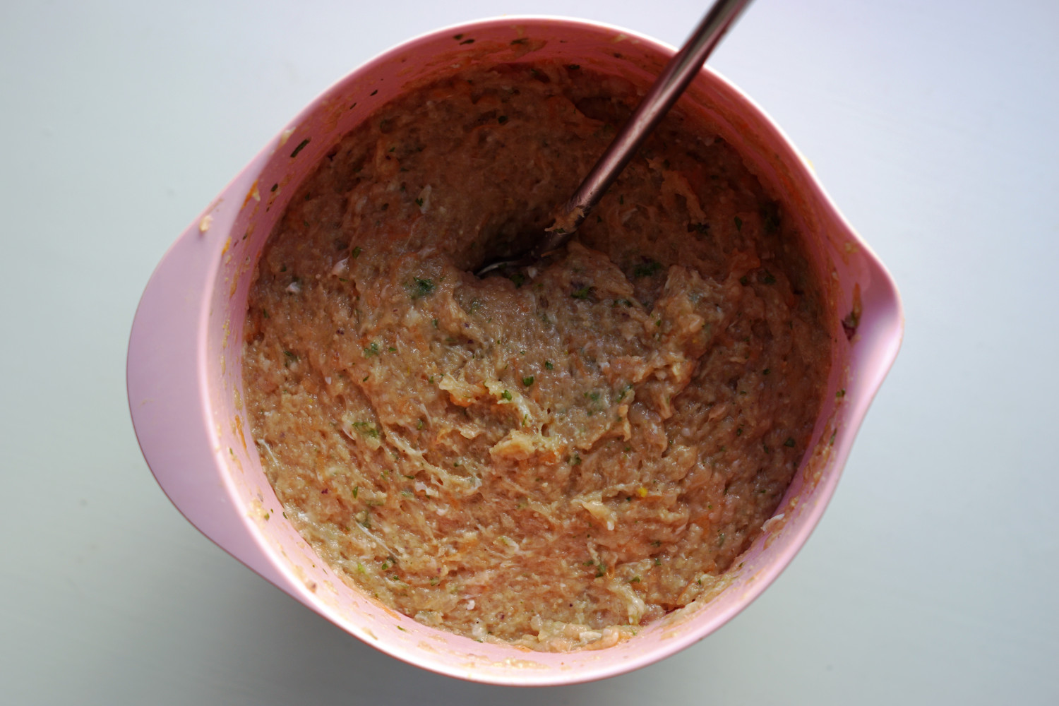 Hak løg helt fint (eller gør som jeg og giv det en tur med stavblenderen), hak persillen, klargør bouillonen og skræl og riv gulerod svarende til 100g.