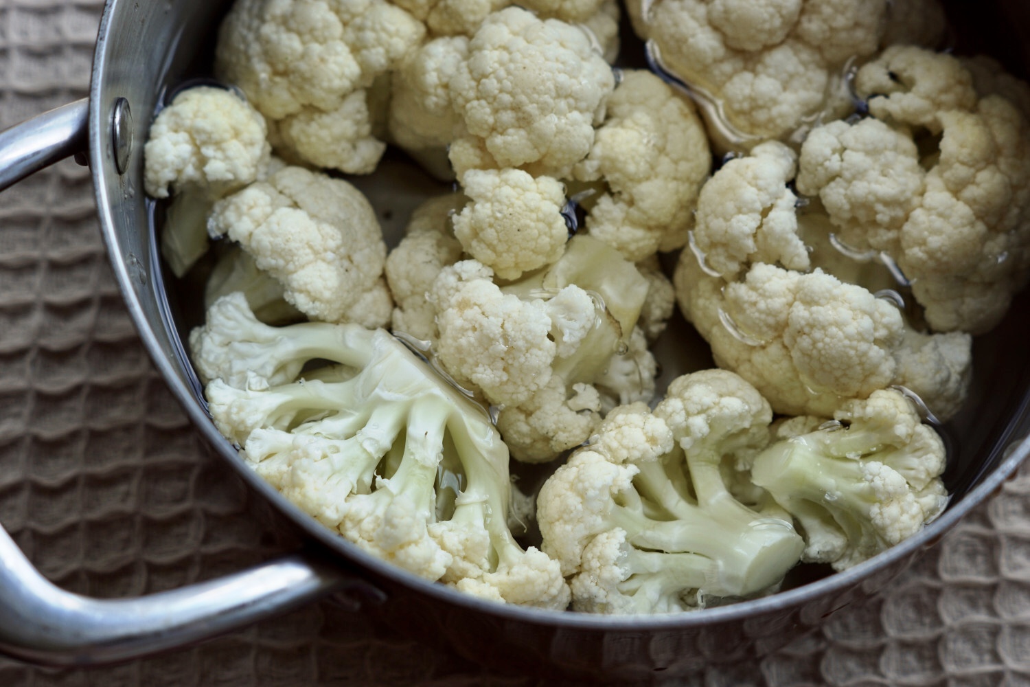 Skær blomkålen i mindre buketter og skyl den grundigt.