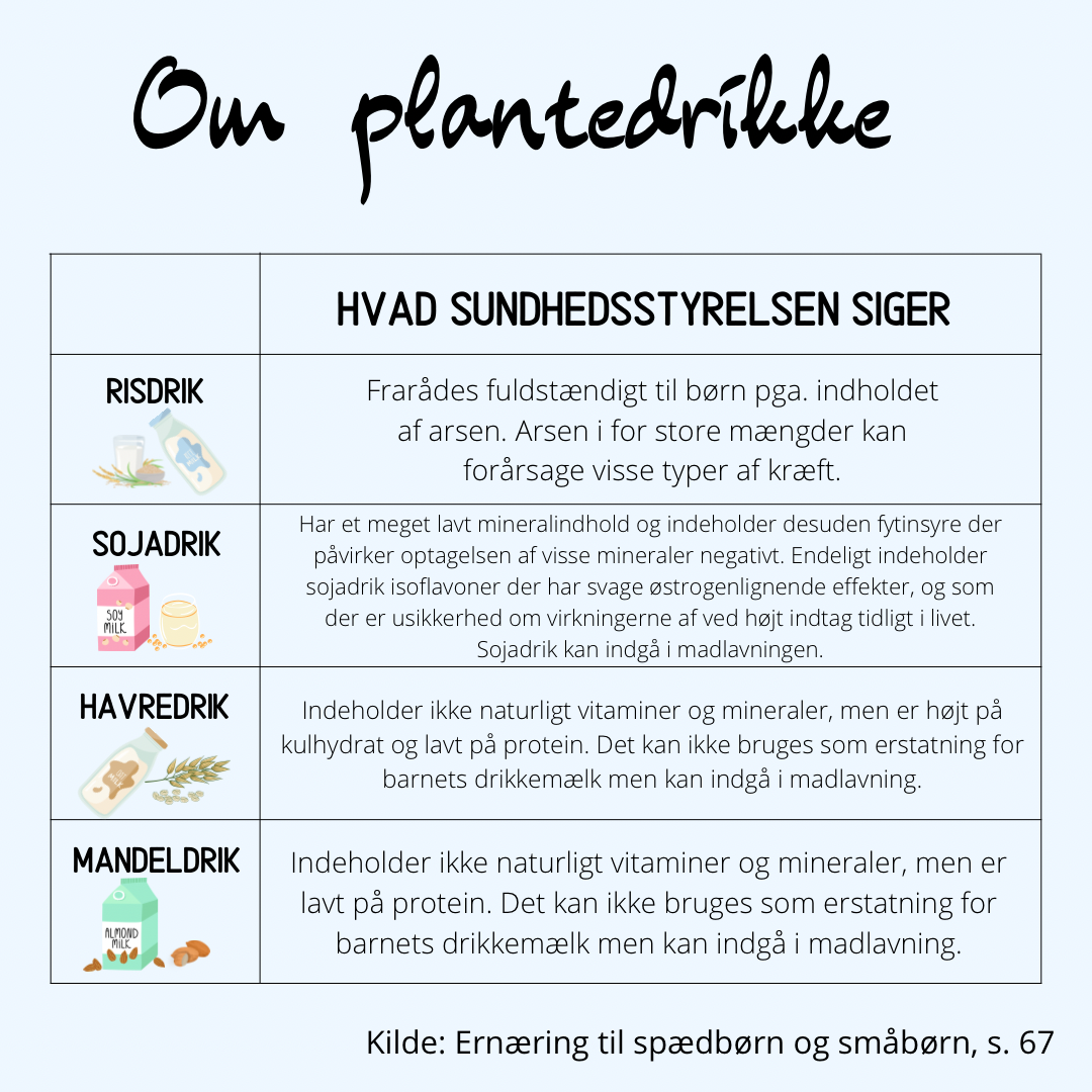 Når vi har ovenstående på plads så er myten om “ingen komælk til babyer 6-12 mdr.” punkteret, og du behøver ikke at tænke i at lave helt særlig kost til dit lille barn eller lave familiens aftensmad med erstatninger for komælk (som mandeldrik eller havredrik). Jeg ser hyppigt i babymadgrupper, at forskelligt mad angives som “lavet på mandeldrik” eller “har taget fra og lavet sovs til den lille på havredrik”. Der kan være alle mulige årsager til at fravælge komælk i nogen grad eller fuldstændigt som familie – dyretiske som helbredsmæssige årsager – og det forudsætter et særligt fokus på hvordan børnenes kost så sammensættes, så babyer og børn bl.a. ikke kommer i underskud af vigtige vitaminer og mineraler. Det vil jeg ikke kaste mig ud i at komme med gode råd eller vejledning til, da det kræver særlig ekspertise og viden.