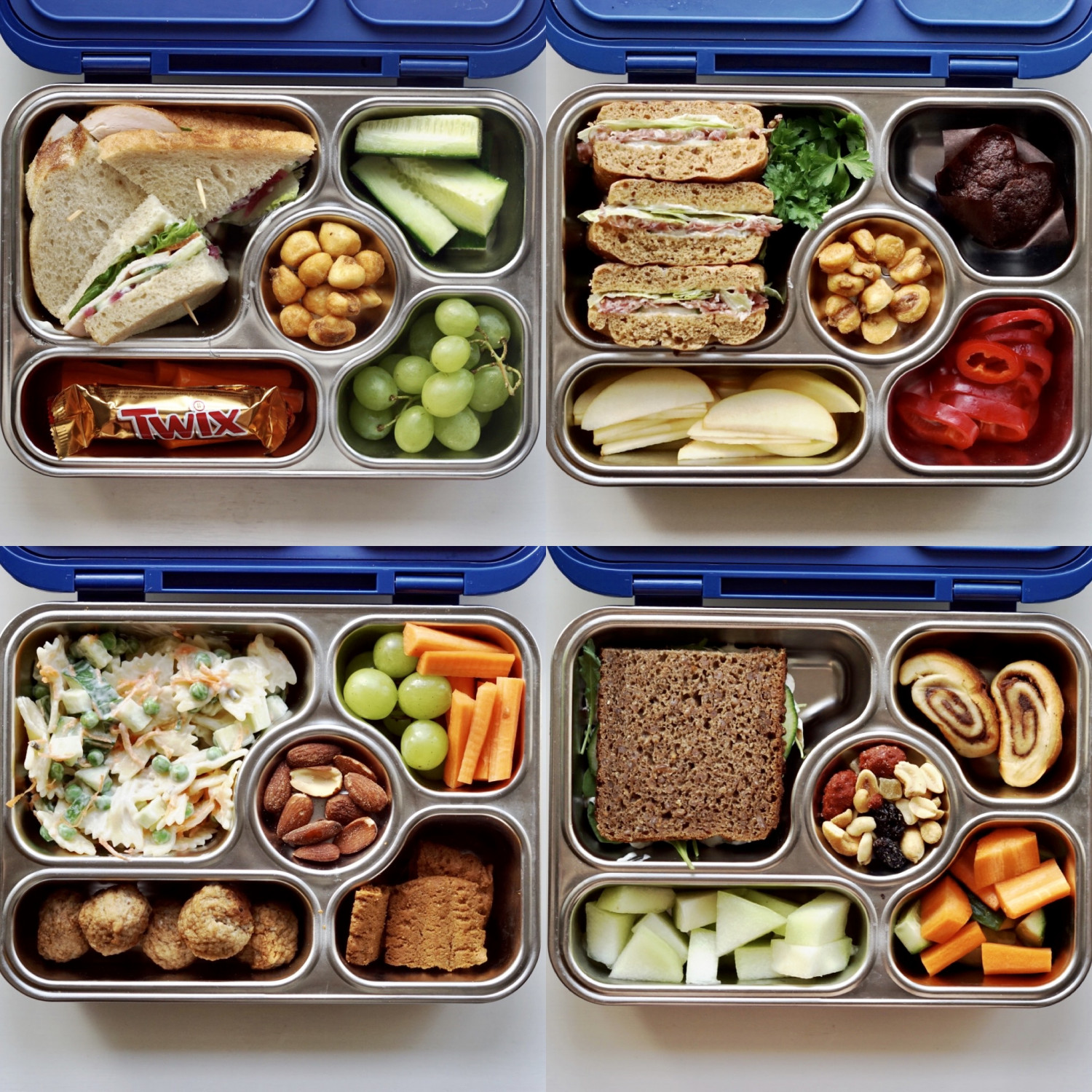 Madkassen jeg bruger her er en Yumbox Presto. Den er lavet i rustfrit stål og silikonekanterne omkring hvert rum sikrer at maden holder sig frisk og at dips og lignende ikke flyder mellem rummene. Det er en rigtig fin madkasse, som også er ‘pæn’, og det lidt mere stilrene udtryk er min mand glad for. En god rumopdelt madkasse til unge og voksne, der ellers associerer madpakker med skrigende plastik, mellemlægningspapir og lunke rugbrødsmadder, og derfor helst ikke vil have madpakke med.