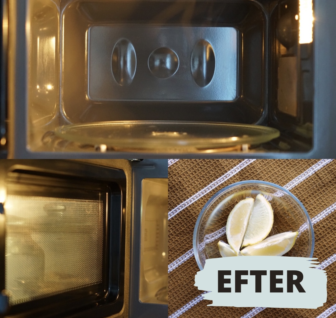 TIP! Tricket med et par skiver citron i en skål vand og så lige køre 2 minutters tid i mikrobølgeovnen, kan du også bruge dage hvor du har lunet fødevarer med kraftig lugt – f.eks. fiskefrikadeller, leverpostej og lign. – og så lige tørre toppen og siderne i ovnen af. Så undgår du lugtgener.