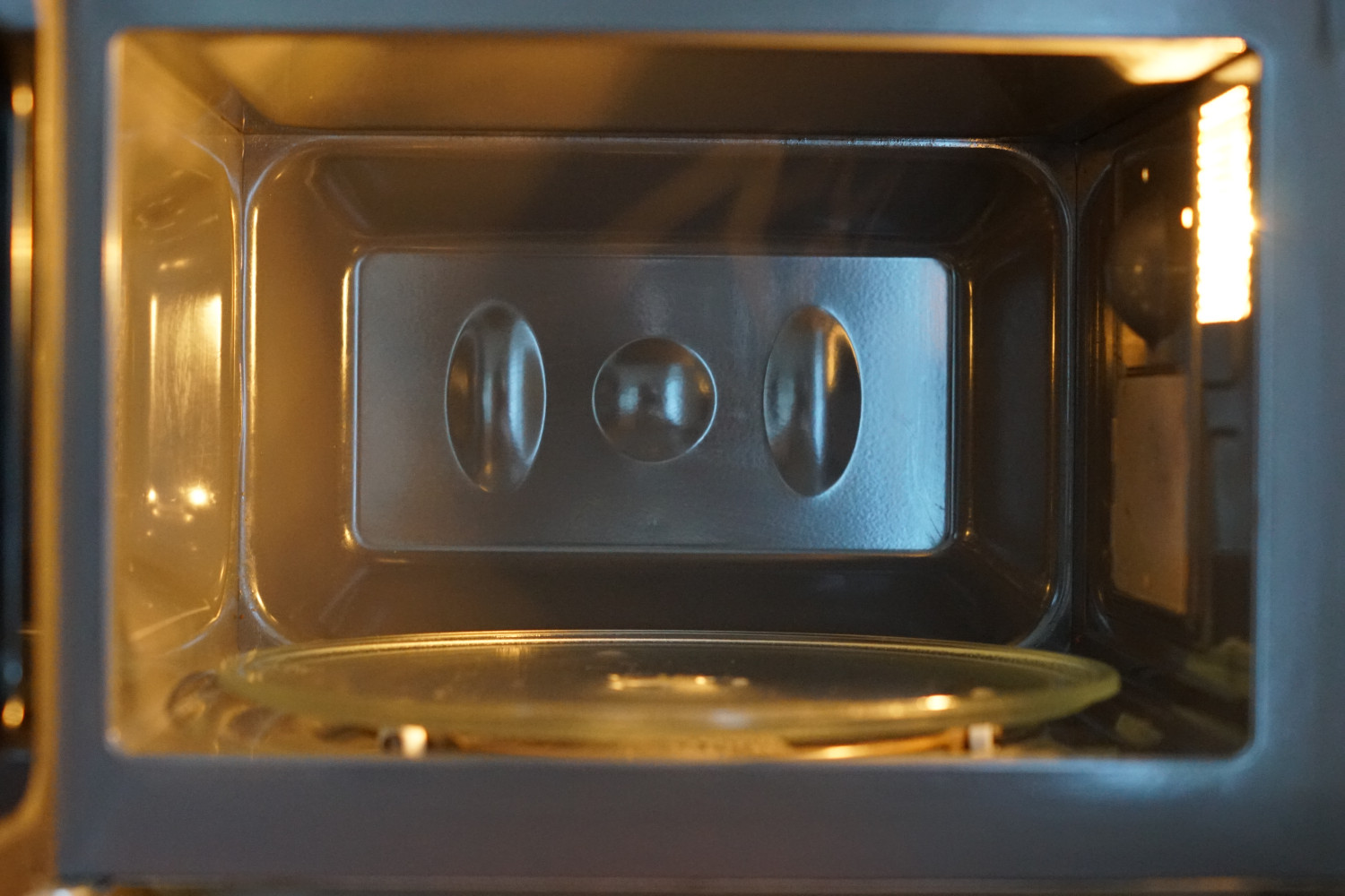 Fjern nu tallerkenen fra mikrobølgeovnen og aftør ovnen indvendigt med en tør og ren klud.