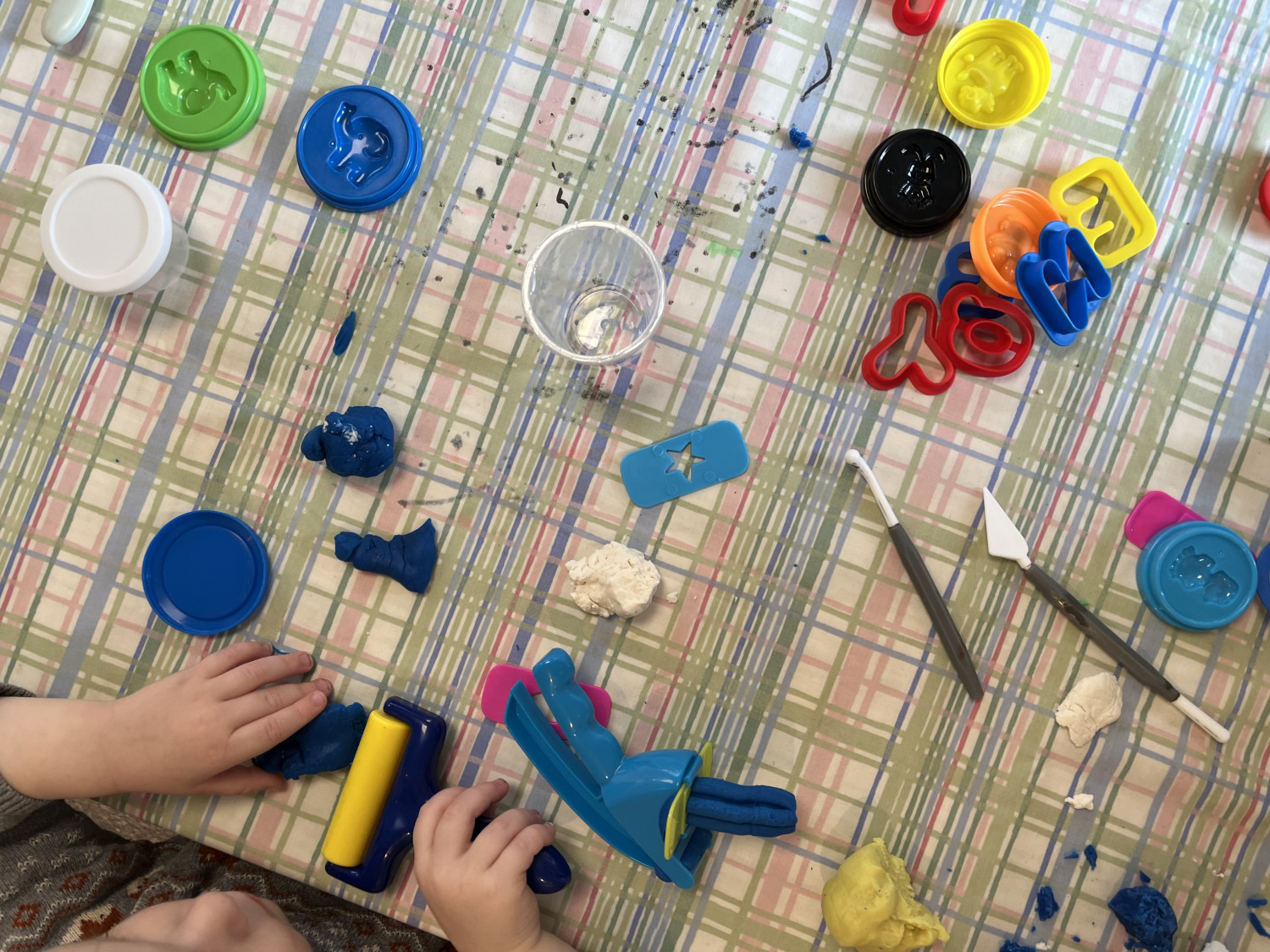 Efterhånden som børnene i legegruppen er blevet ældre, så er vi begyndt at medbringe kreating til de børn der gerne vil trække sig fra legen og sidde og male, lege med modellervoks, trylledej eller lign.