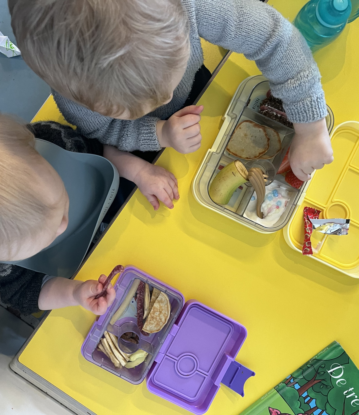 Alle børnene i gruppen har madpakker med, og det er et kæmpe hit hos børnene at spise sammen. Måltidet bliver en større social begivenhed og der bliver som oftest delt indhold fra madpakkerne på kryds og tværs.